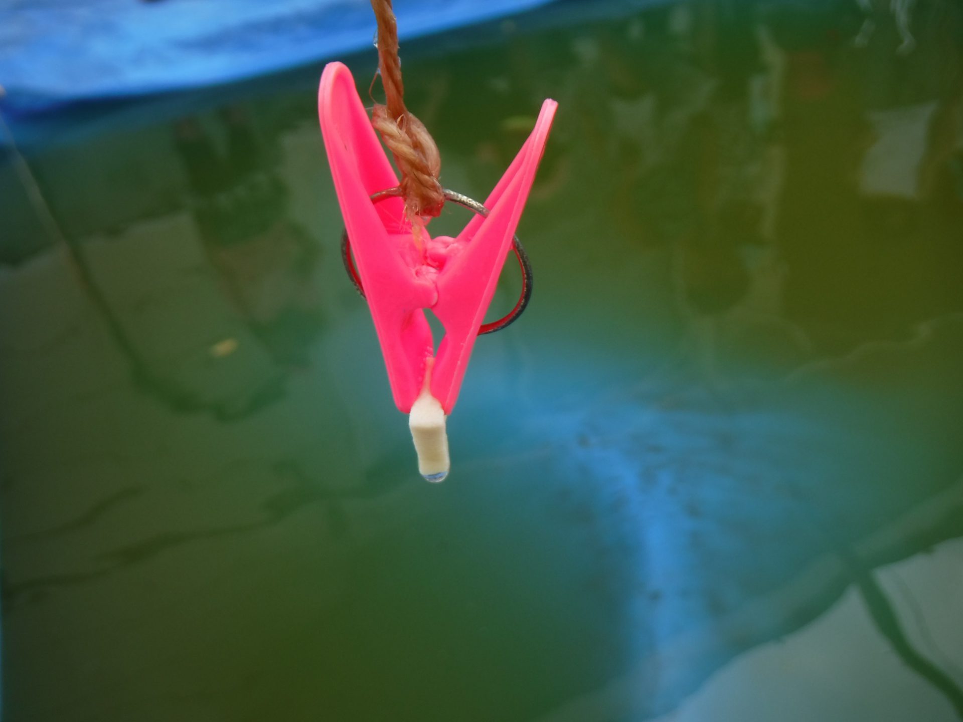クラスで飼っているオタマジャクシが「麩」に食いついているのを見た子が「これでオタマ釣りできるんじゃない?」と言い出したのです。そこでさっそく・・・