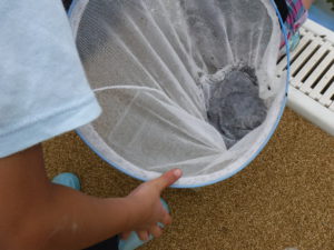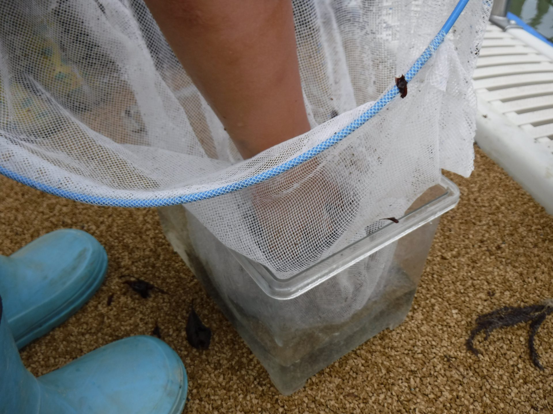ぜんぜん釣れないので、網で底をさらってみると・・