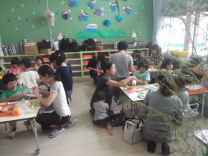 今日は年長組の子ども達がお家の方と一緒に七夕飾りの製作をしました。