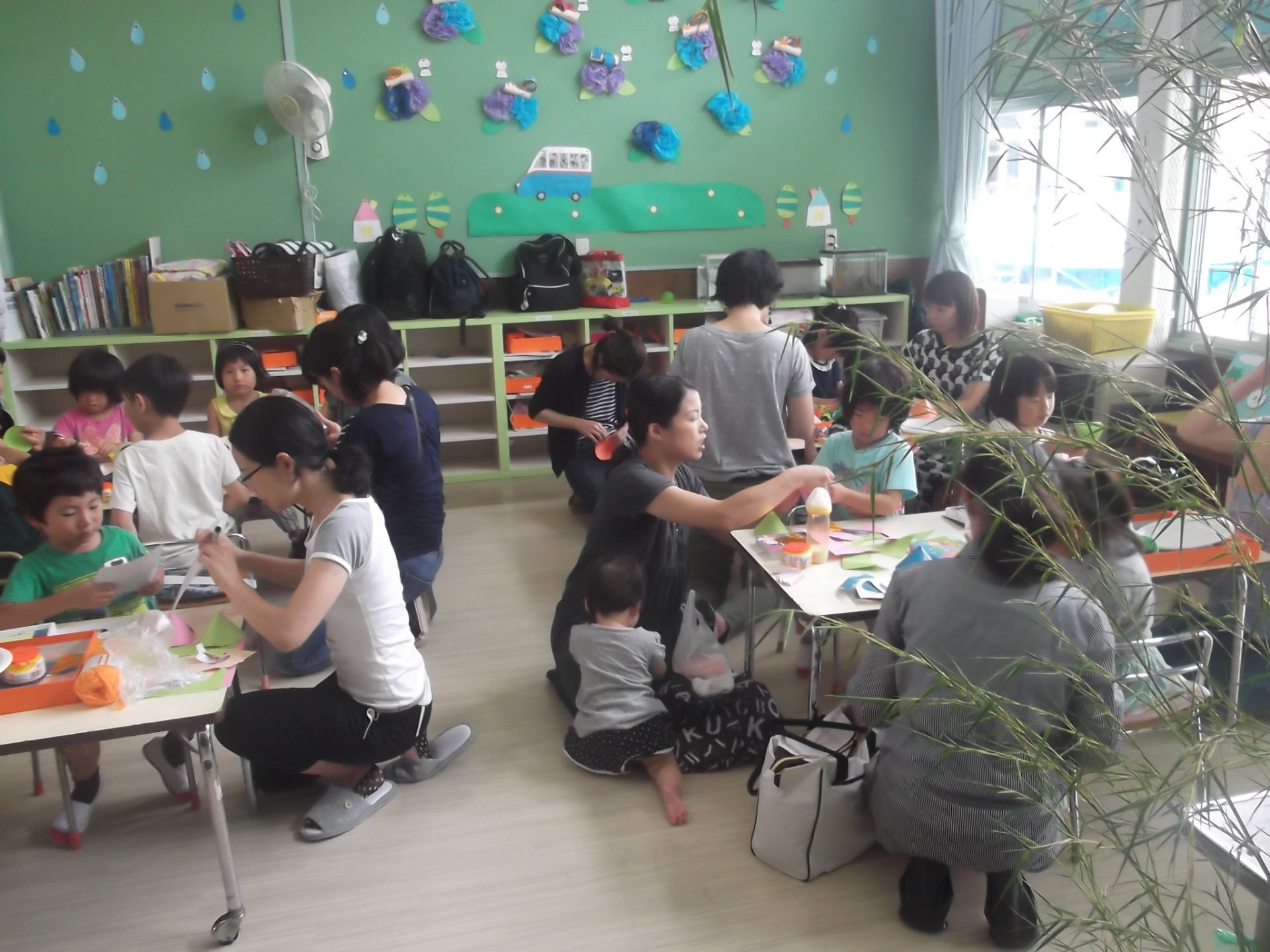 皆で「たなばたさま」の歌を歌い、織姫と彦星を思い思いに作りました。