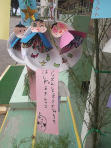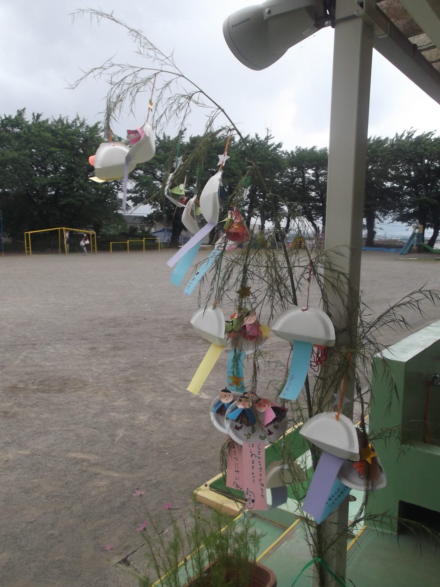 素敵な飾りを作ろうと、工夫する姿があったり、笹のどこに飾りをつけるかを一生懸命考えていました。隣のクラスの笹の方が大きいよと、ちょっとうらやましそうに話す姿に、くすっと笑ってしまいました。お願い事は人それぞれで、速く走れるようになりたい、パティシエさんになりたい、自転車で坂道を走れるようになりたい、などいろんなお願い事が書かれていました。皆の願いが叶うといいね!!