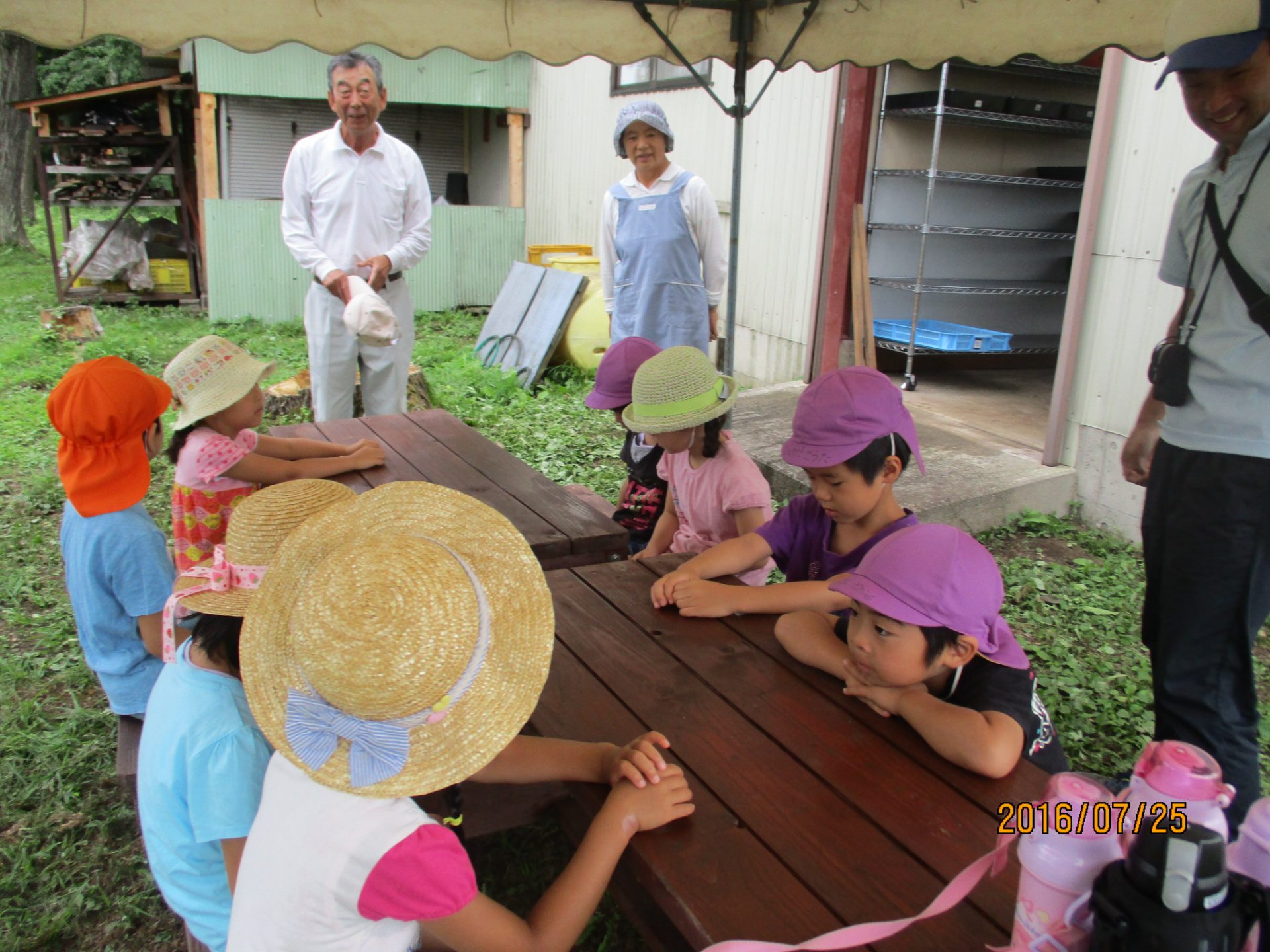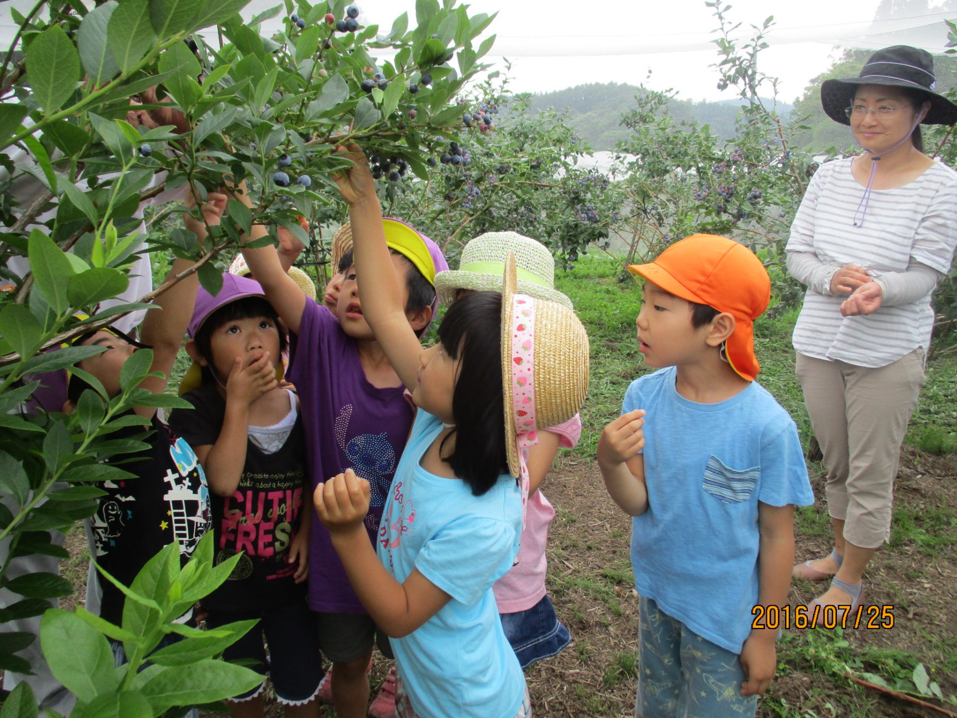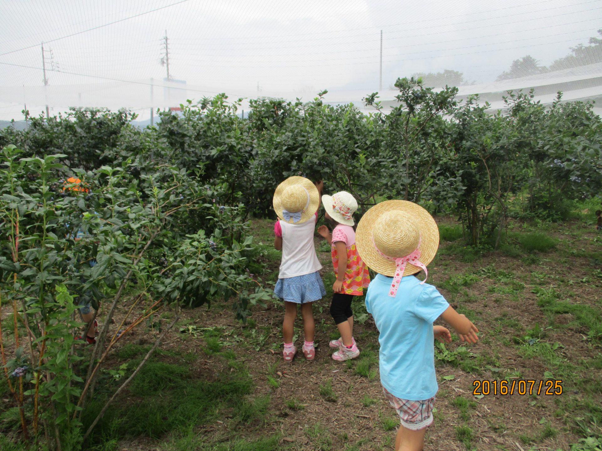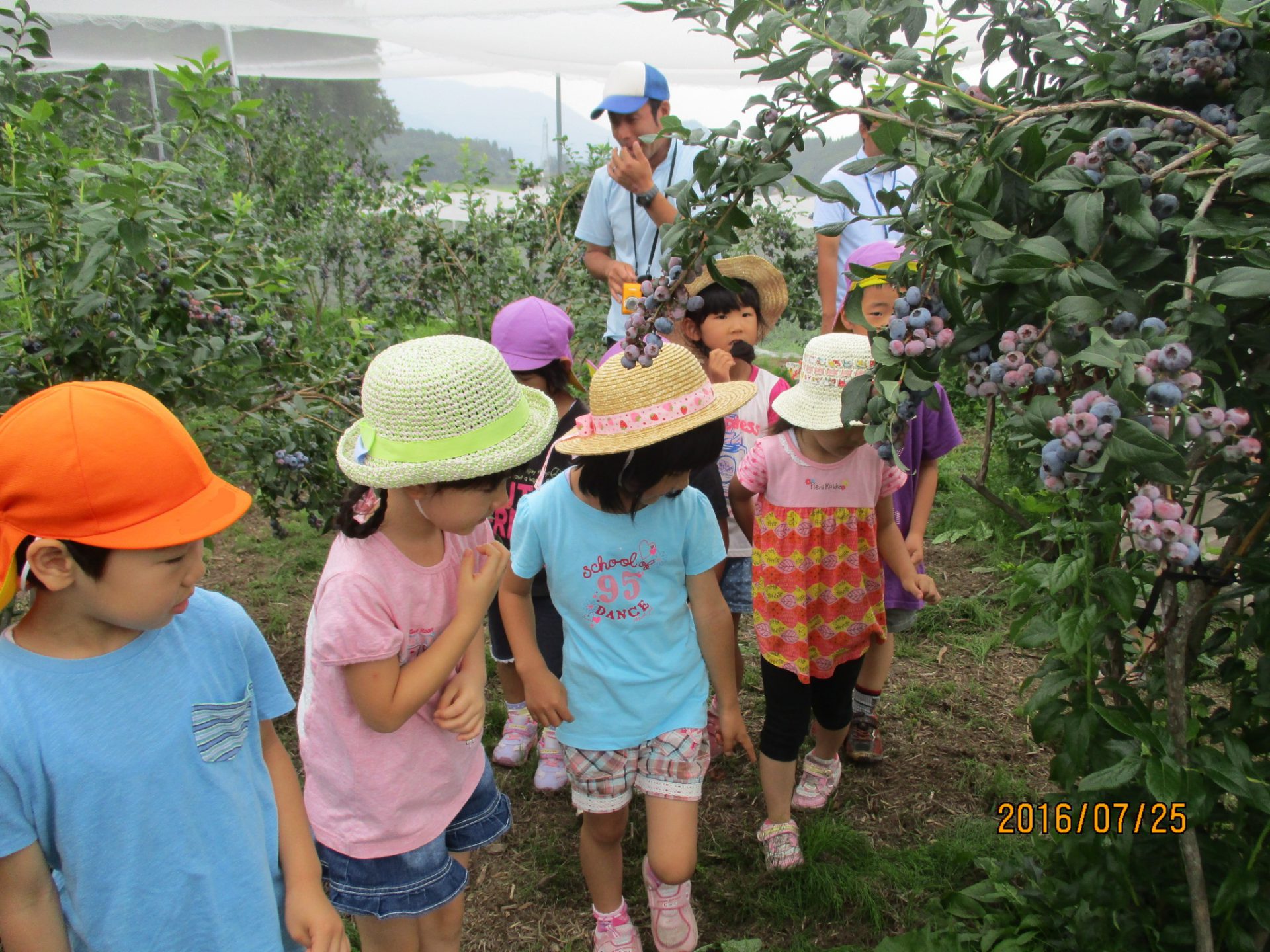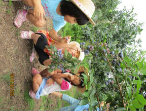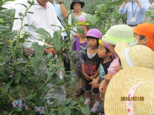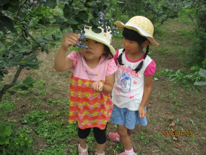 ブルーベリー農園に行く途中にもトウモロコシ畑が広がっていたり、秋にはそば畑を見る事が出来たりと地元の特産物がすぐ近くにある環境で育っている子ども達。今回のように地元の特産物に触れる機会を生かしながら、子ども達に信濃町の魅力を伝えていきたいなと思います。またブルーベリー農園さんは毎年、年長児を招待して下さっています。地元の方々にも感謝です。