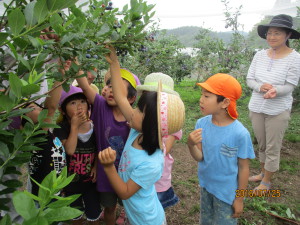 KAWASUN農園には沢山の種類のブルーベリーが植えられているので、どの木のブルーベリーが好きかみんなで食べくらべをしました。