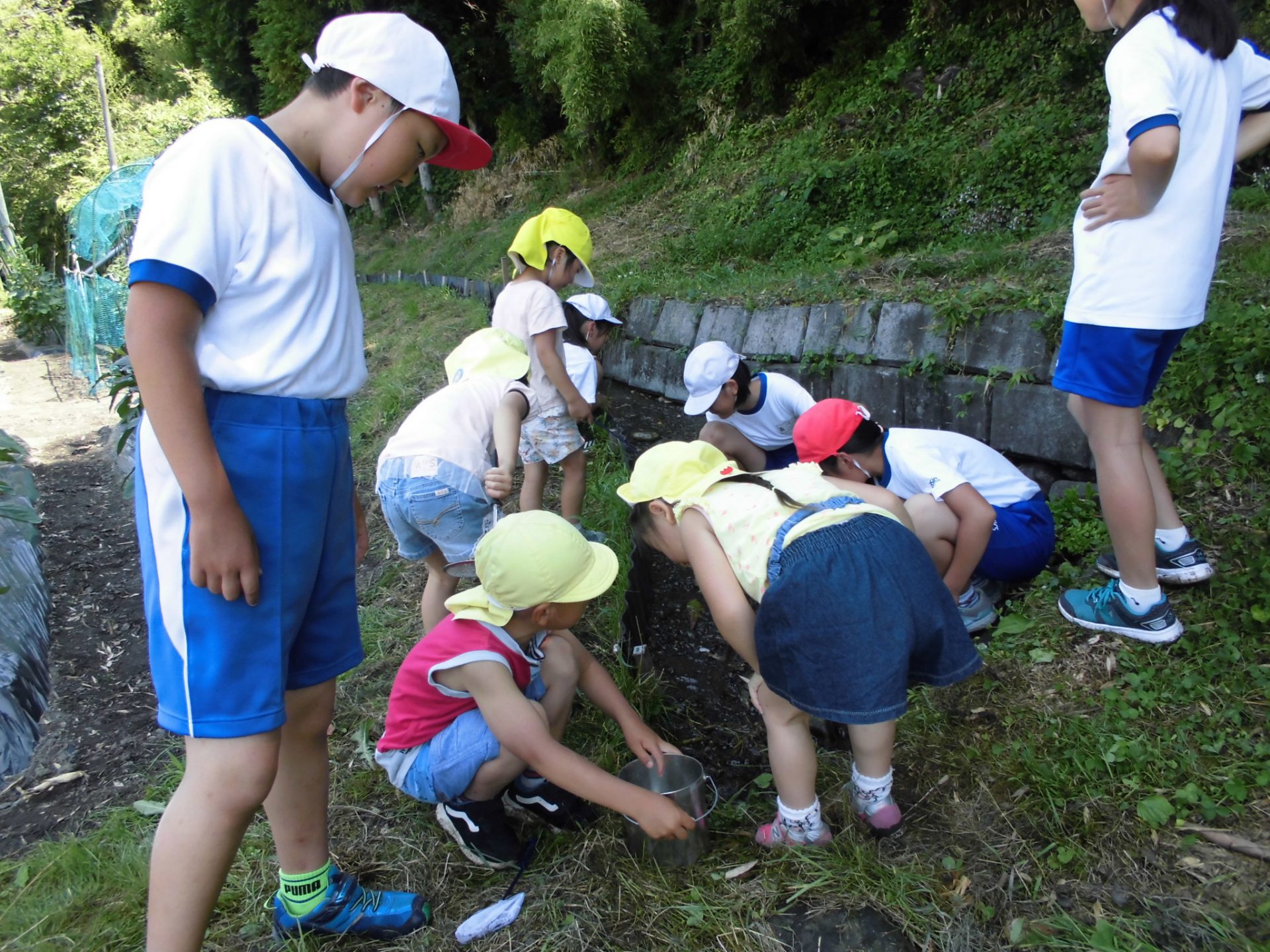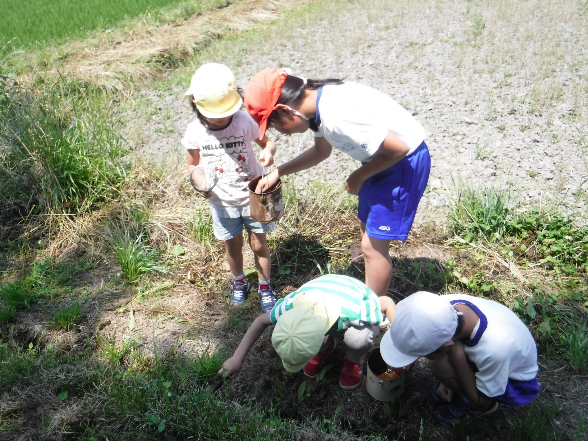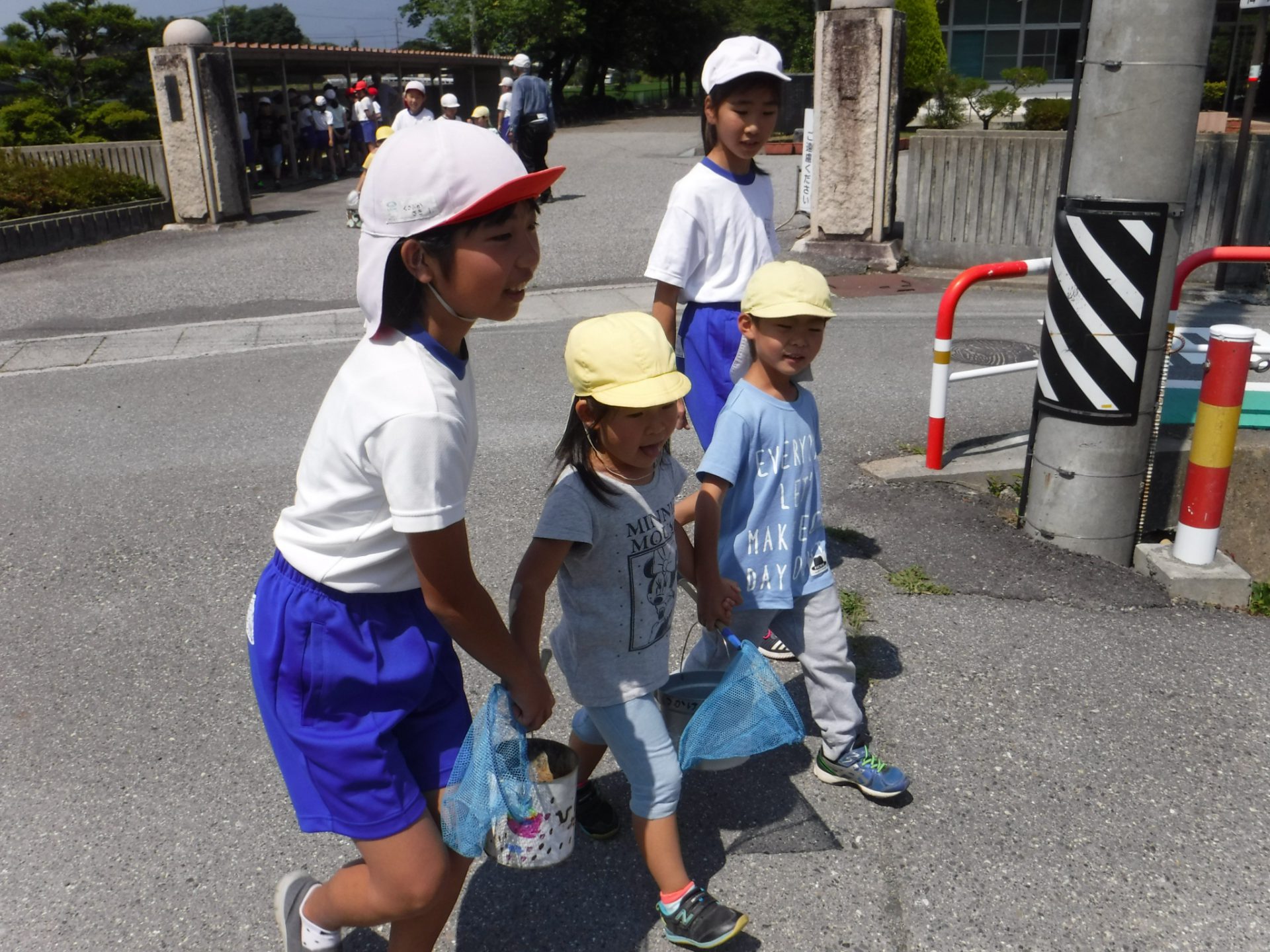 5年生のお兄さん、お姉さんに捕まえる手伝いをしてもらったことで良い交流の場となり、就学の期待が膨らんだように思う。