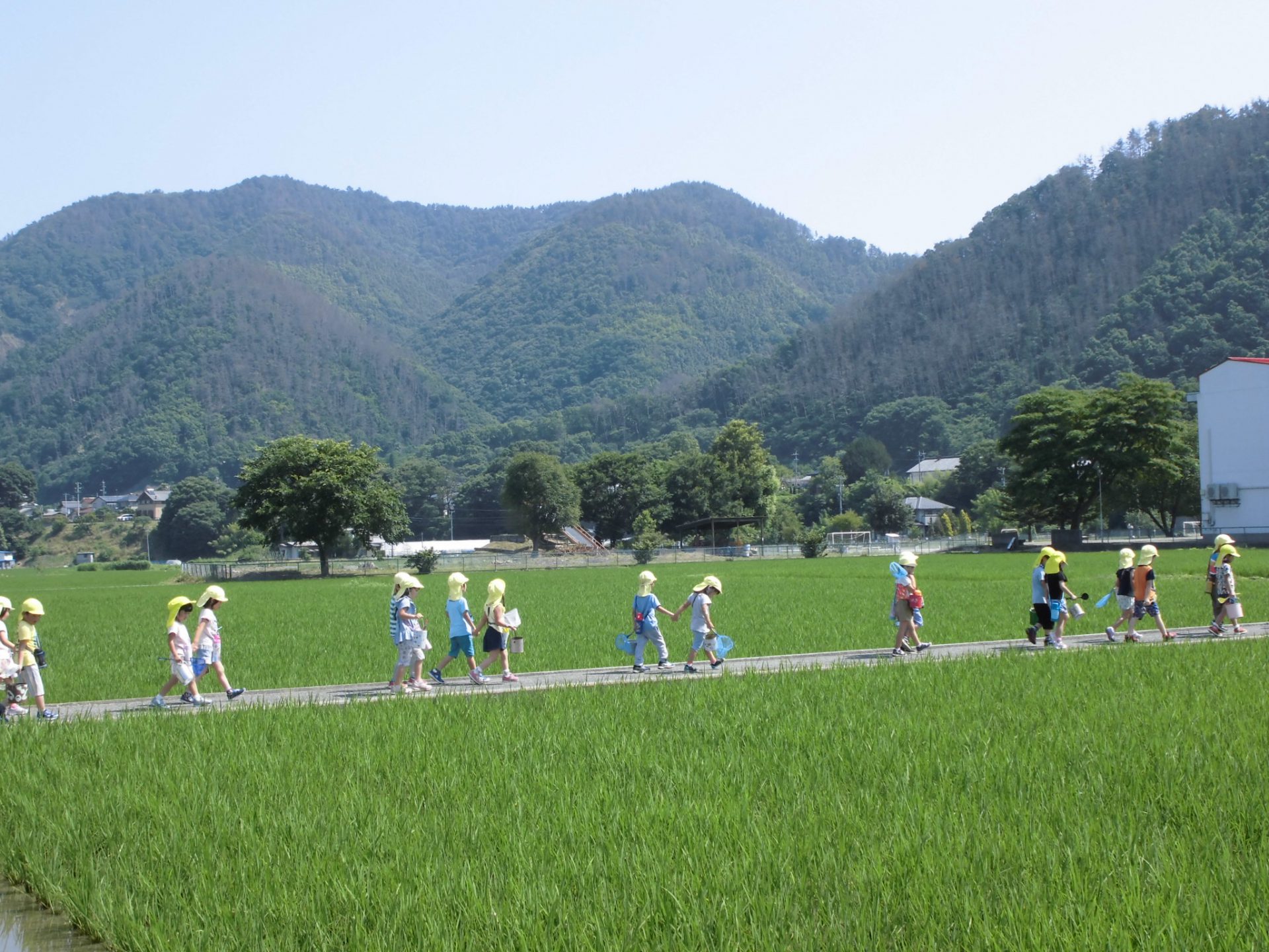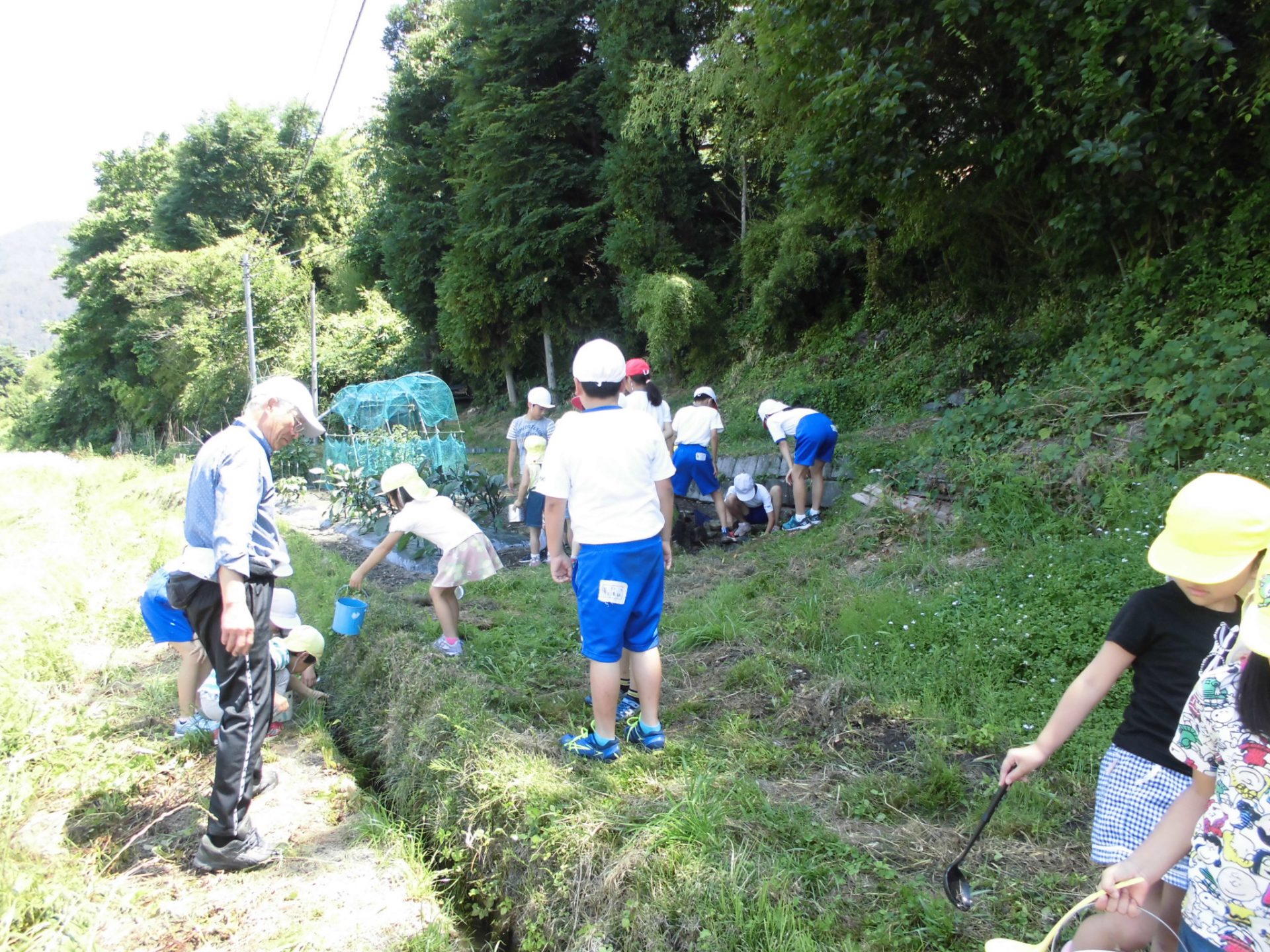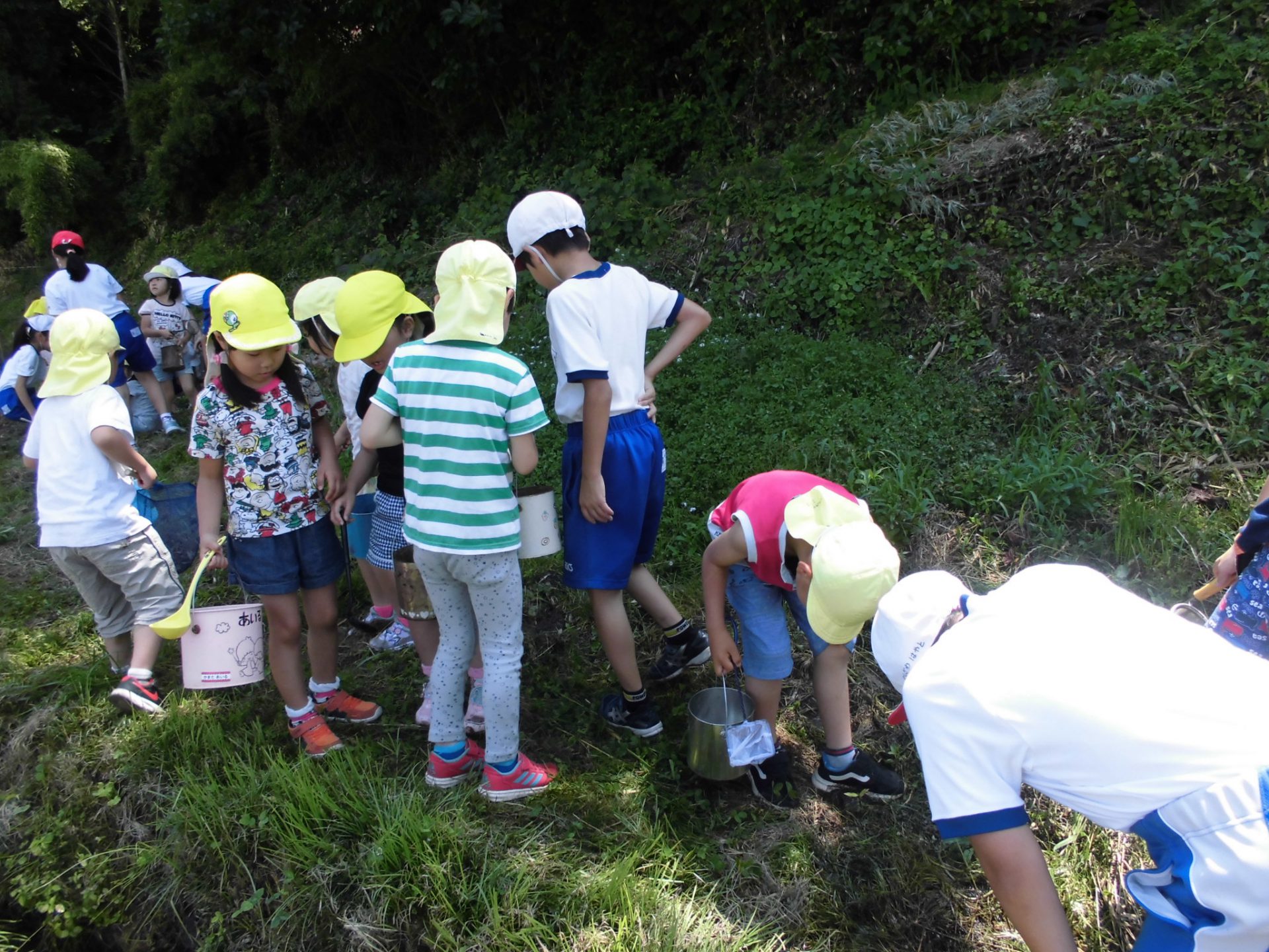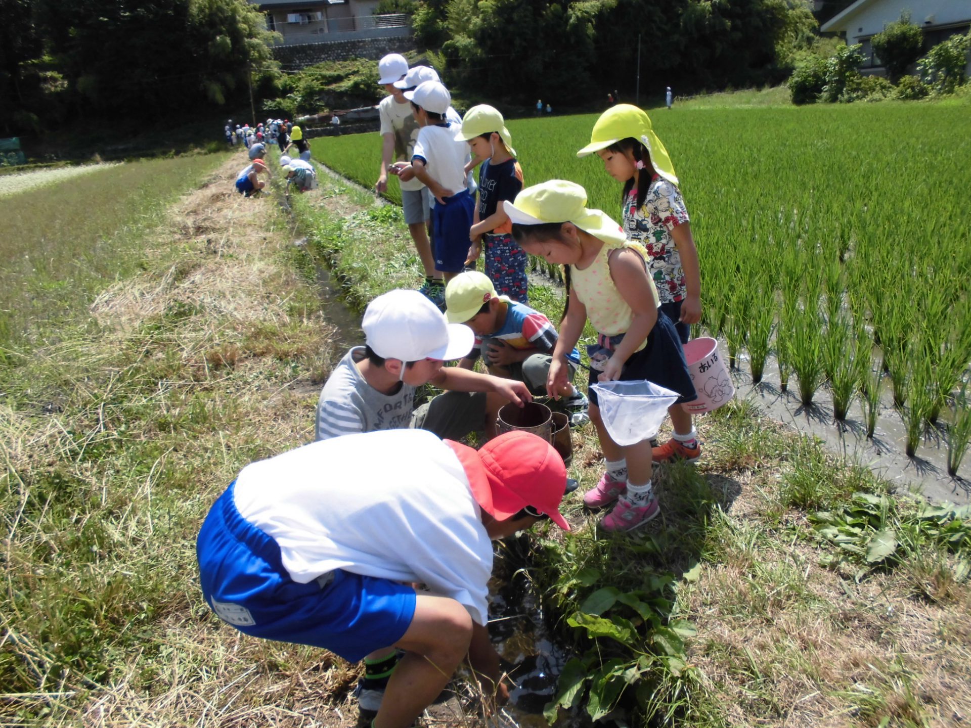 5年生のお兄さん、お姉さんに捕まえる手伝いをしてもらったことで良い交流の場となり、就学の期待が膨らんだように思う。