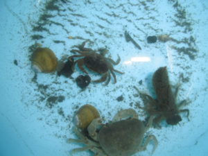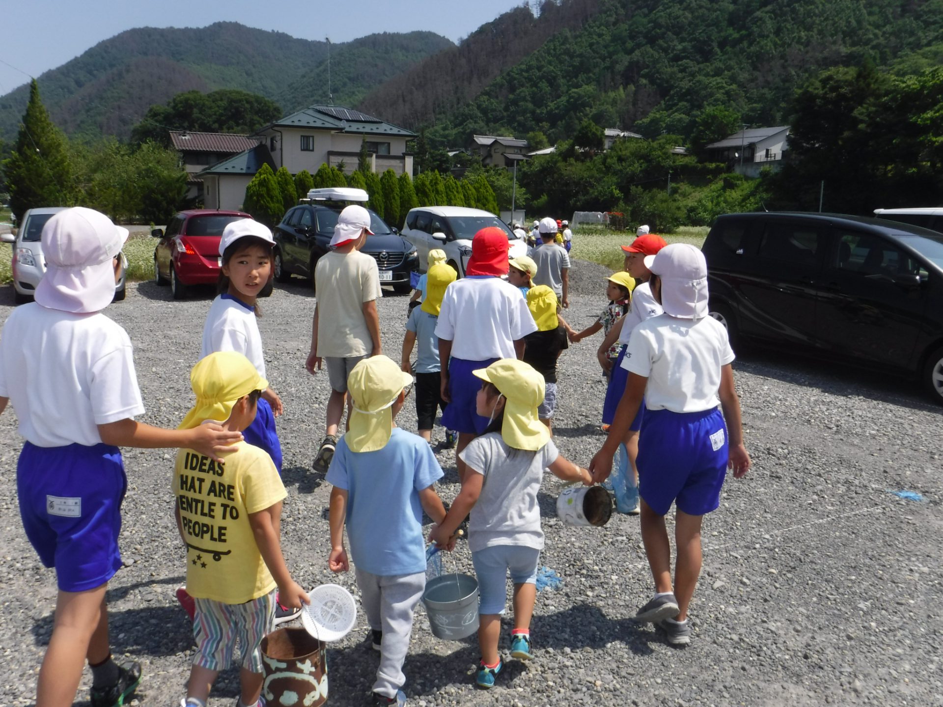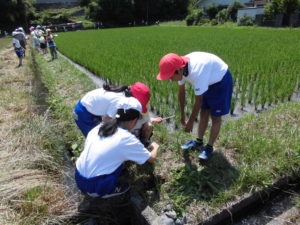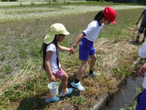 ・豊科東小に行き、カニ・どじょうを見たり、触れたり、捕まえる。