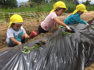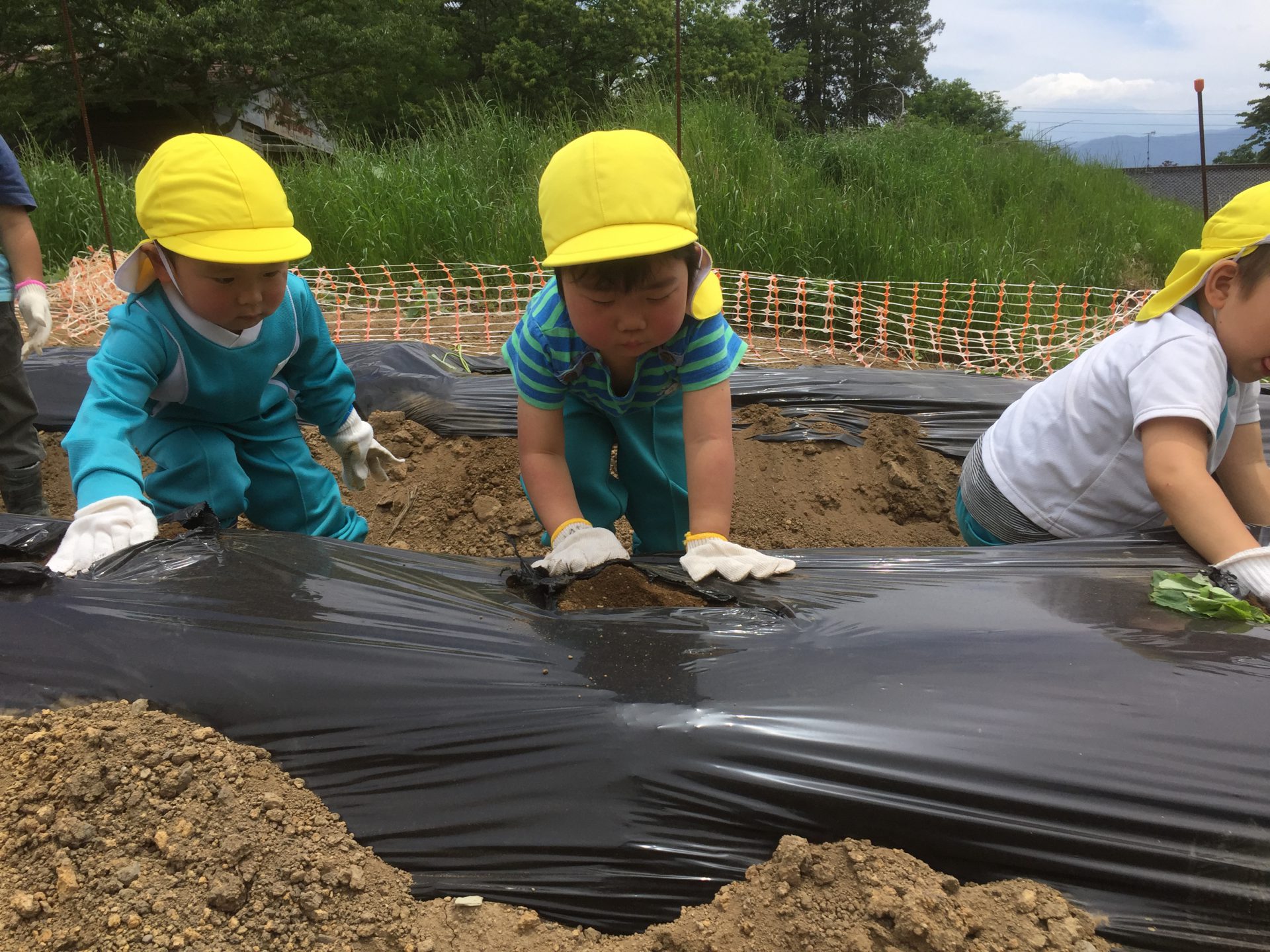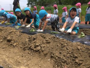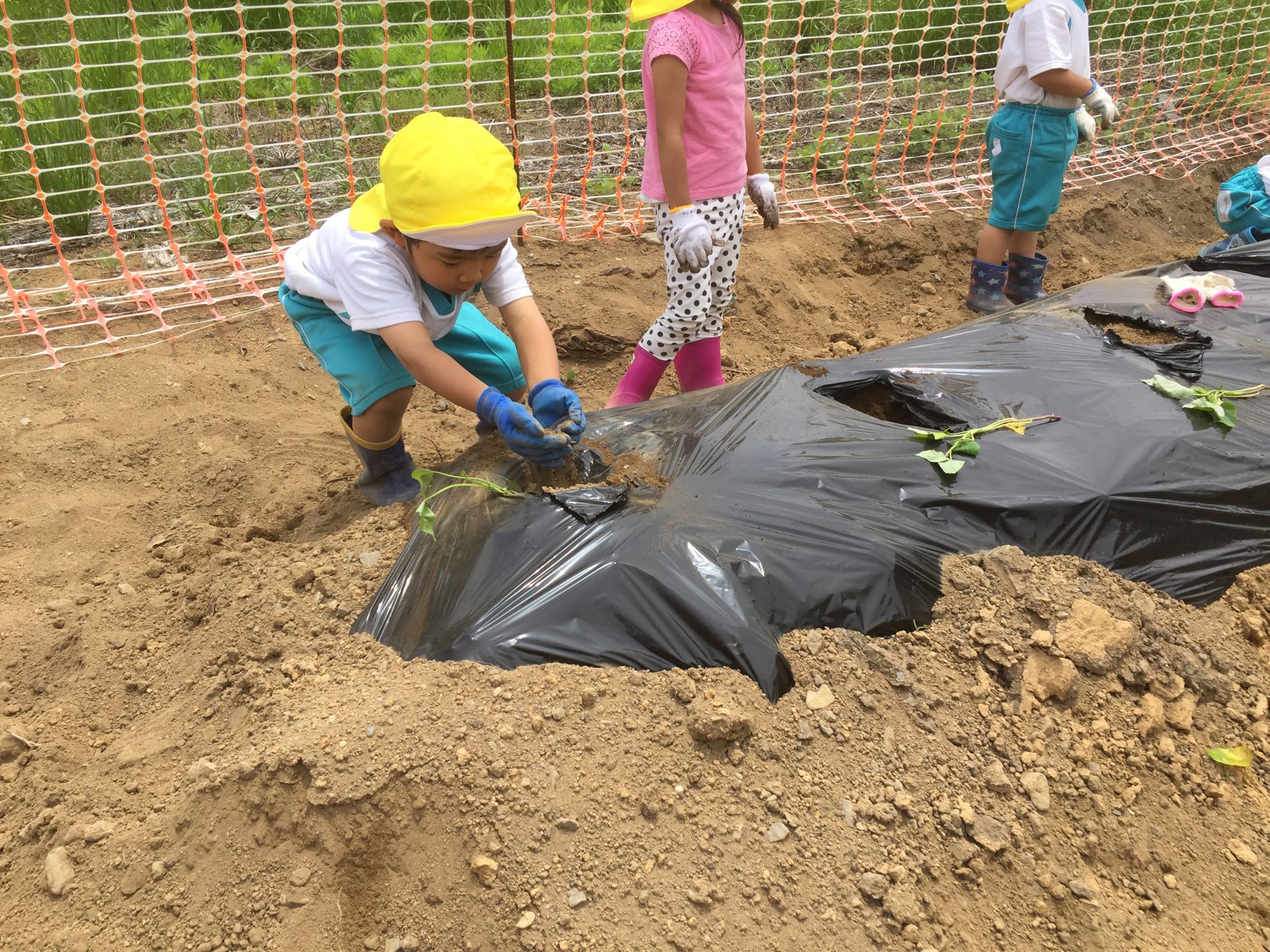 「おいしいお芋になってね」と、声をかける子どもたちもたくさんいました。