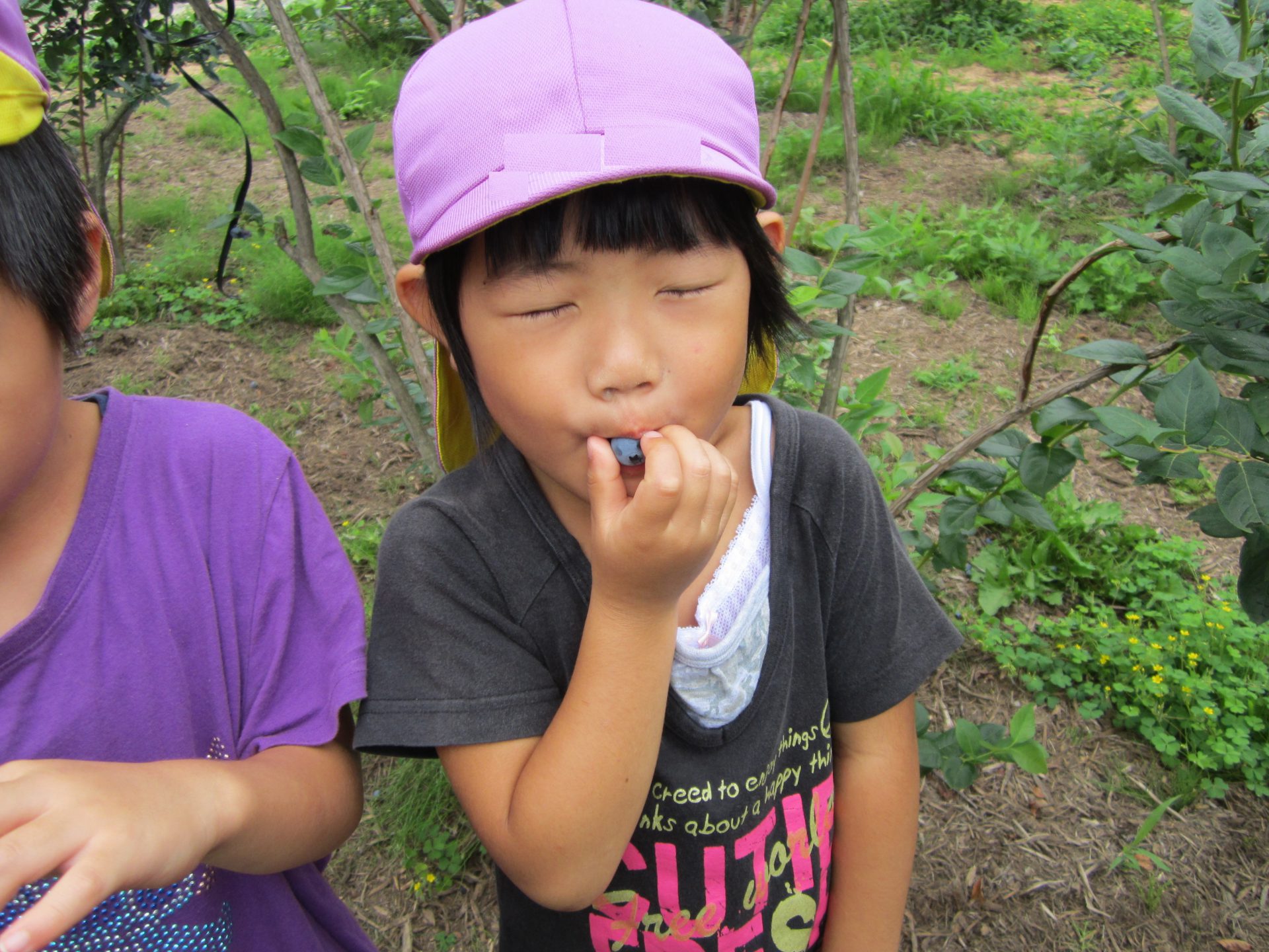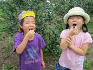 「ブルーベリーはどんなに食べてもお腹を壊さないよ」と川原田さんに教えてもらい、お腹がいっぱいになるまでブルーベリーを食べて大満足の子ども達でした。