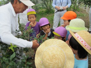 さっそく農園の中に入って、オーナーの川原田さんに、どうなってるのがおいしいブルーベリーなのか?どうやって採るのかなど教えてもらいました。