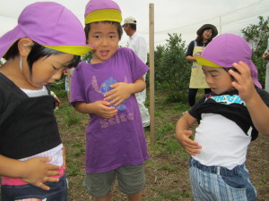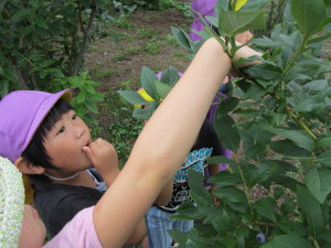 「むらさき色で大きいのが甘くておいしいよ」「まだ赤いのは酸っぱいヤツ」