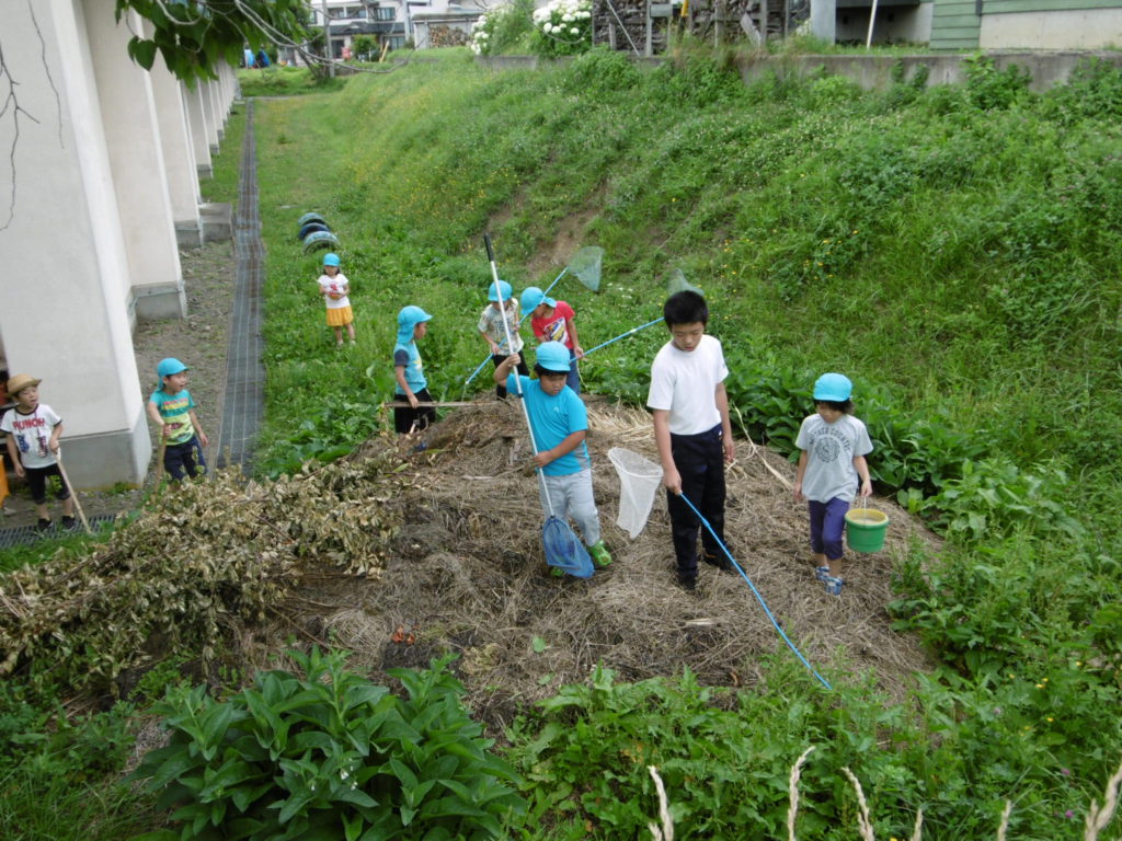 この日は8年生の職場体験ということで、お兄さんも一緒に子ども達と虫取りを楽しんでいました。