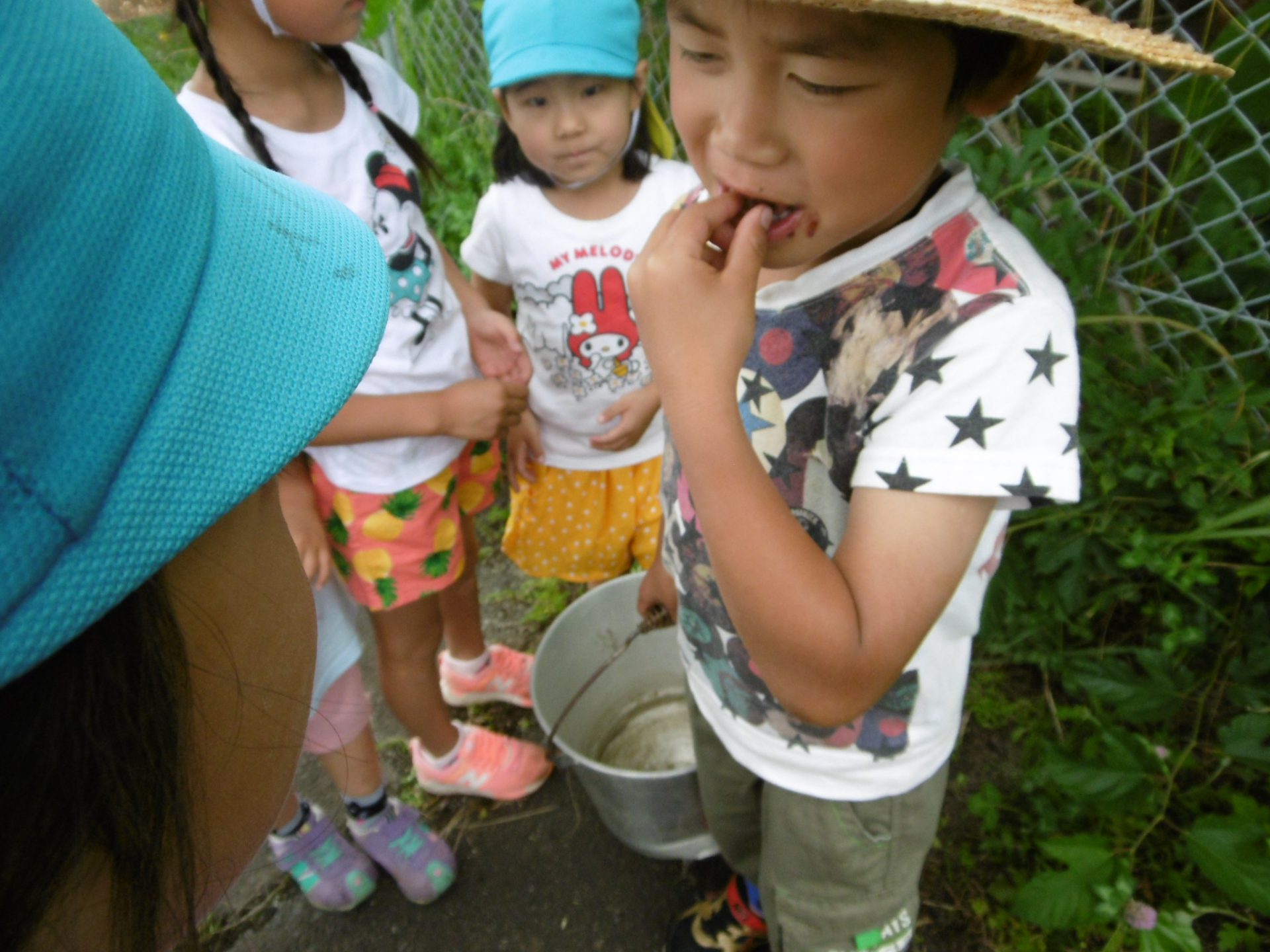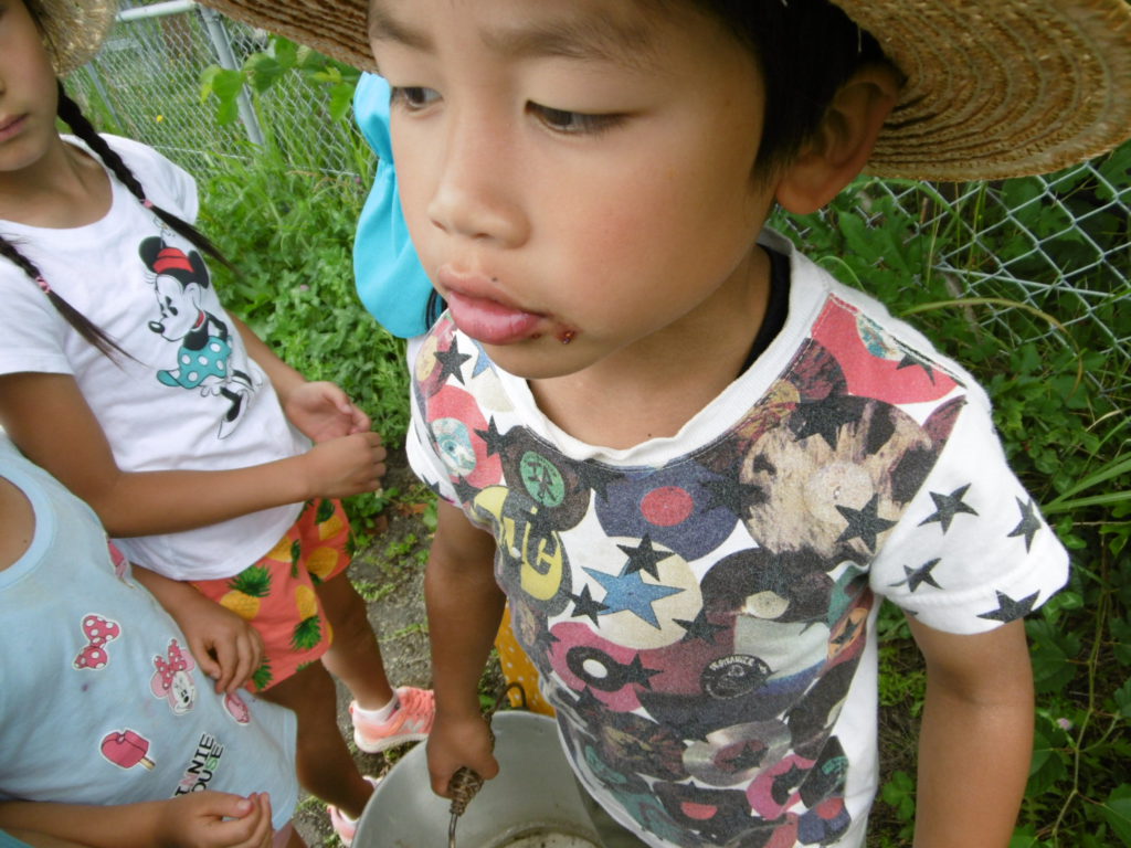 という姿。興味・関心を持ち、そしてやってみようという意欲、そこから得た実体験。こうして子ども達は育っていくんだなあと改めて感じました。A君の赤い桑の実を食べた後の表情は忘れられませんね。でも、A君はこの経験から「赤い桑の実は美味しくない」ってきっと学んだのでしょう。一見、ただただ遊んでいるようにしか見えませんが、「遊び」は「学び」なんですね。