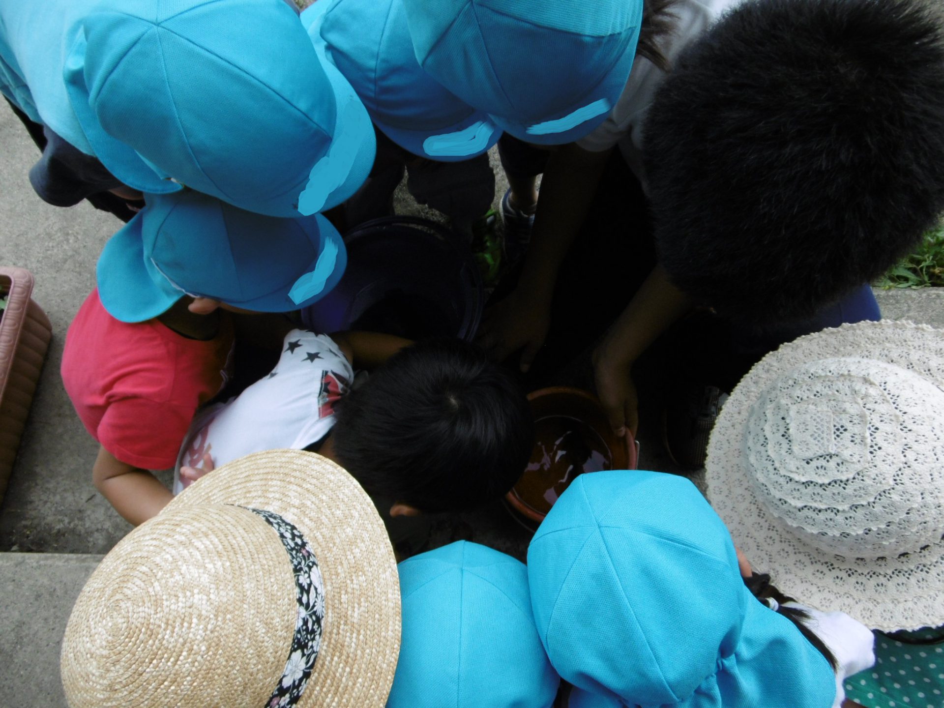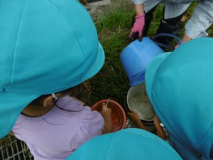 この日は朝から「おたまじゃくしの水を替える。」と言って数人の子ども達が動き出しました。