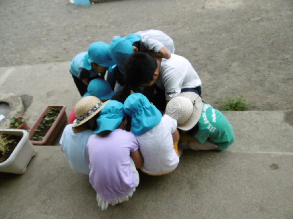 子ども達は毎日ちょっとした変化にもよく気がつきます。大人からすれば「そんなことで喜んで〜」なあんて思うかもしれませんが子ども達にとっては大発見なのです!また、子どもって「どうして?」「なんで?」の質問が多いですよね。「○○だから」「○○だよ。」と、どうしても結果や物事をすぐに説明しがちですが、そこで「どうしてだと思う?」「なんでだろうねえ?」と、子どもの気持ちに寄り添ってあげることを大事にしていきたいなあと思っています。そして子ども達の目線になって一緒に考えてあげるようにしたいです。