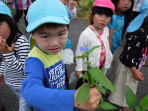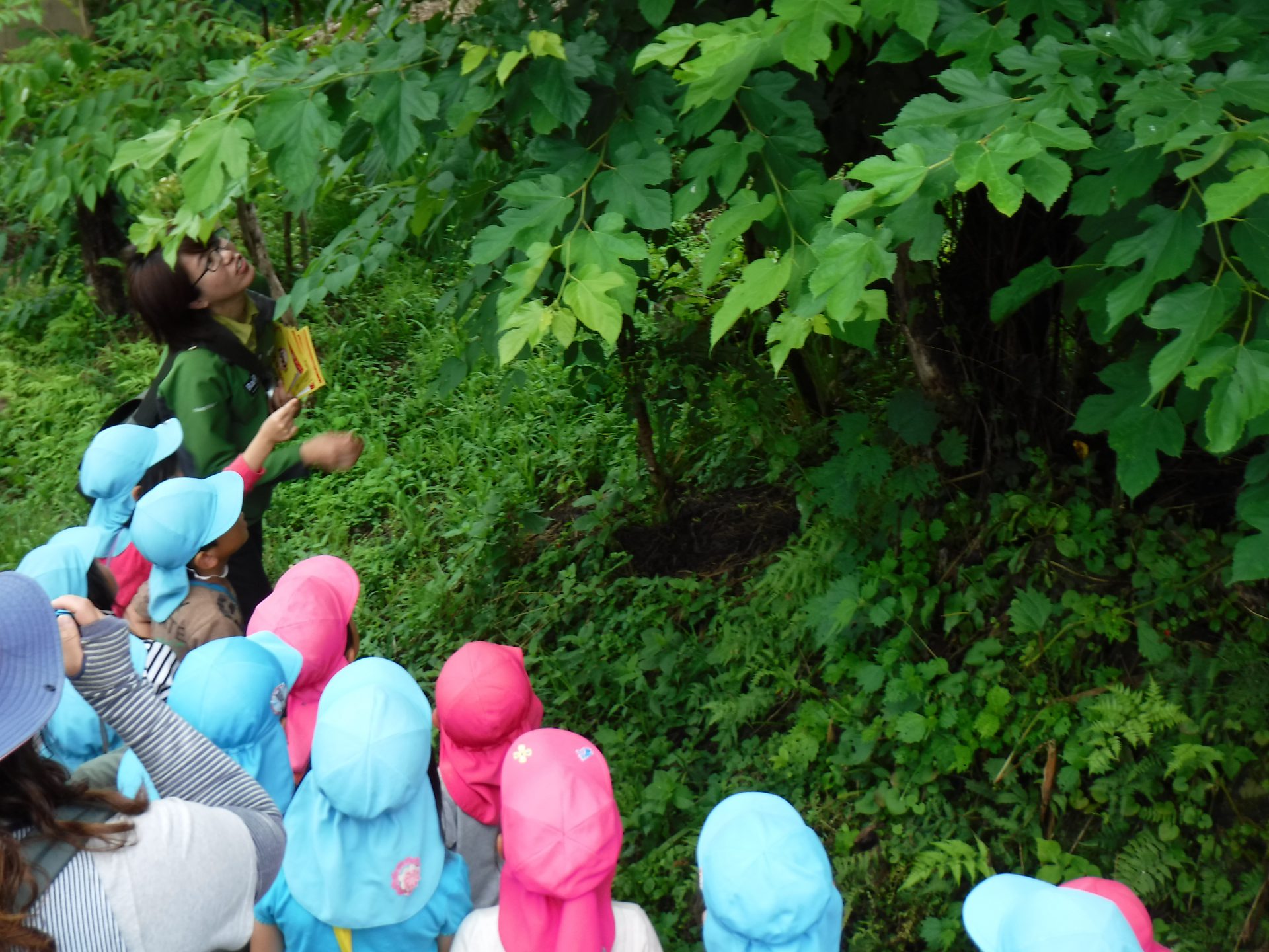 「外来種じゃないけど、これはクワの葉っぱだよ。みんな形が違うんだ」