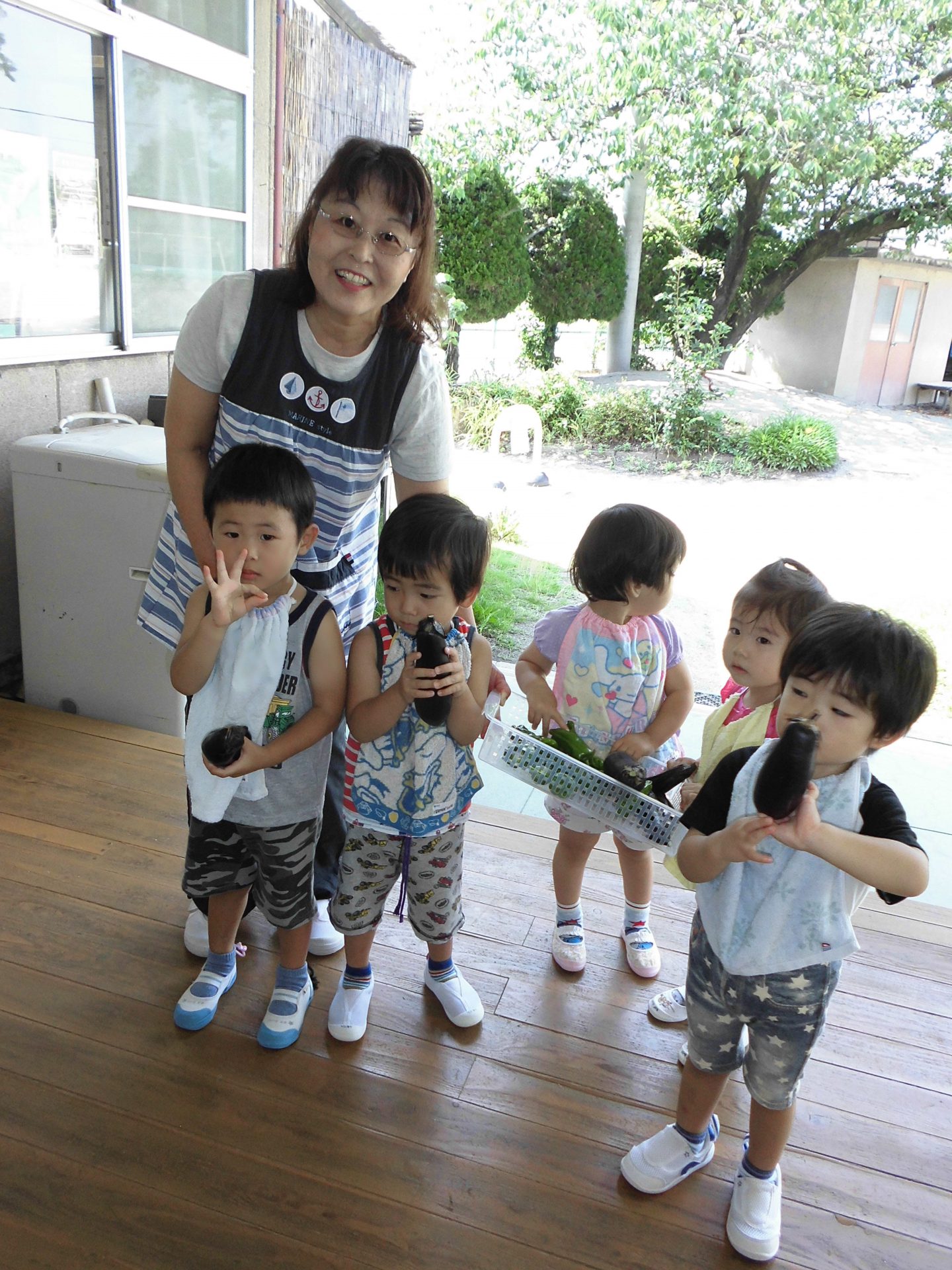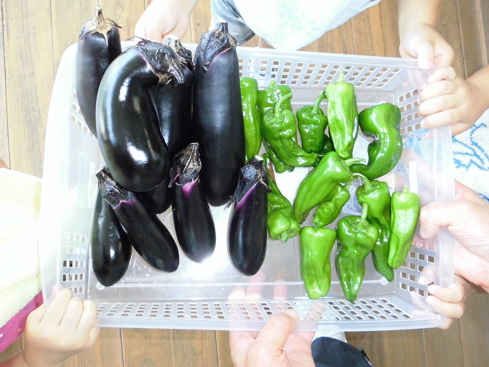 未満児さんも、たくさんの《なすやピーマン》を収穫しました。