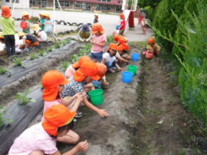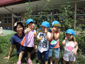 全園児が、年齢ごとの畑に育てている野菜たちが、子どもたちの心も体も大きく育ててくれます。