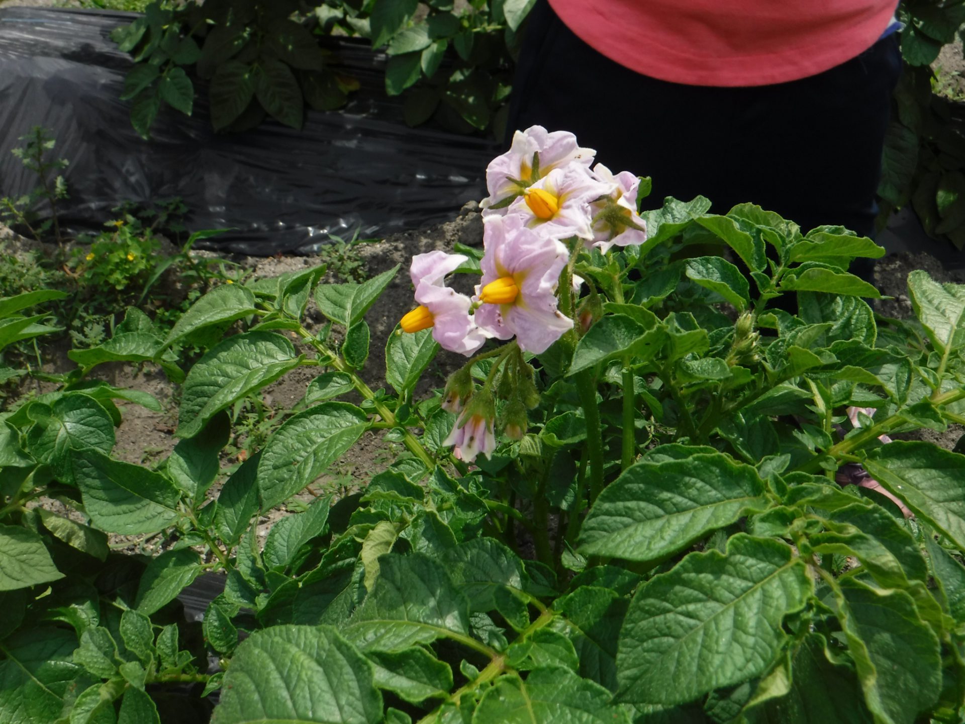 グングン大きく成長すると、かわいい《ジャガイモの花》が咲きました。