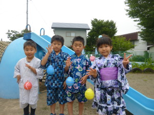 いつもと違う格好にウキウキ♪だけど、動いたりトイレが大変だったり…。暗いお化け屋敷に泣いちゃう子もいたけど、みんなで頑張りました!