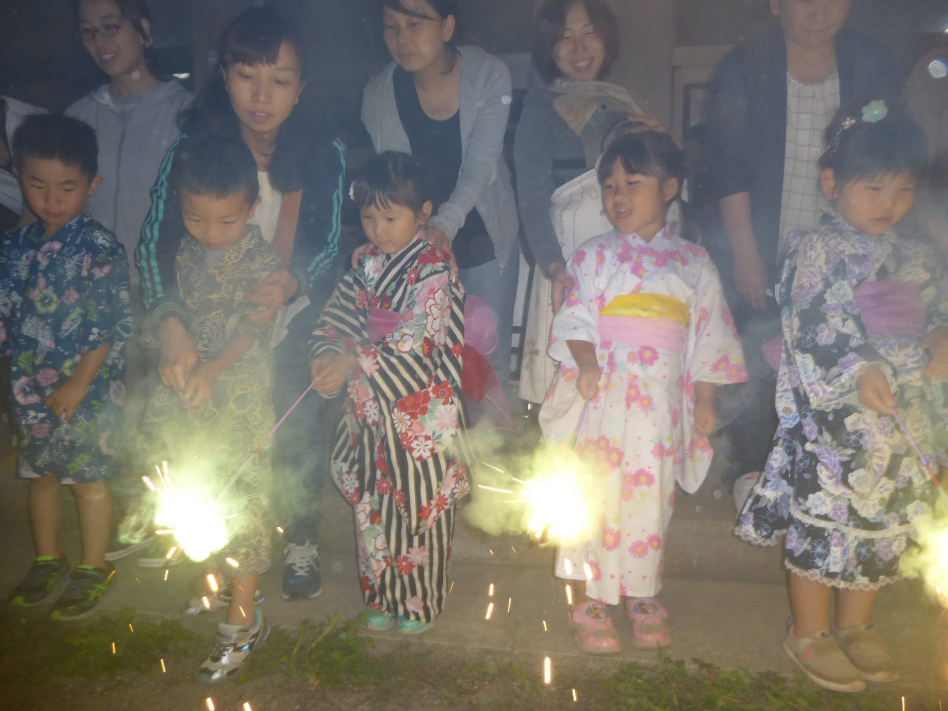 花火・・・手持ち花火をお家の人と一緒に♪そして最後は打ち上げ花火!!!迫力満点でした!