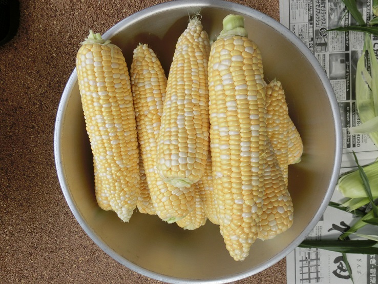 これが今日のおやつになる園児が剥いたトウモロコシです。
