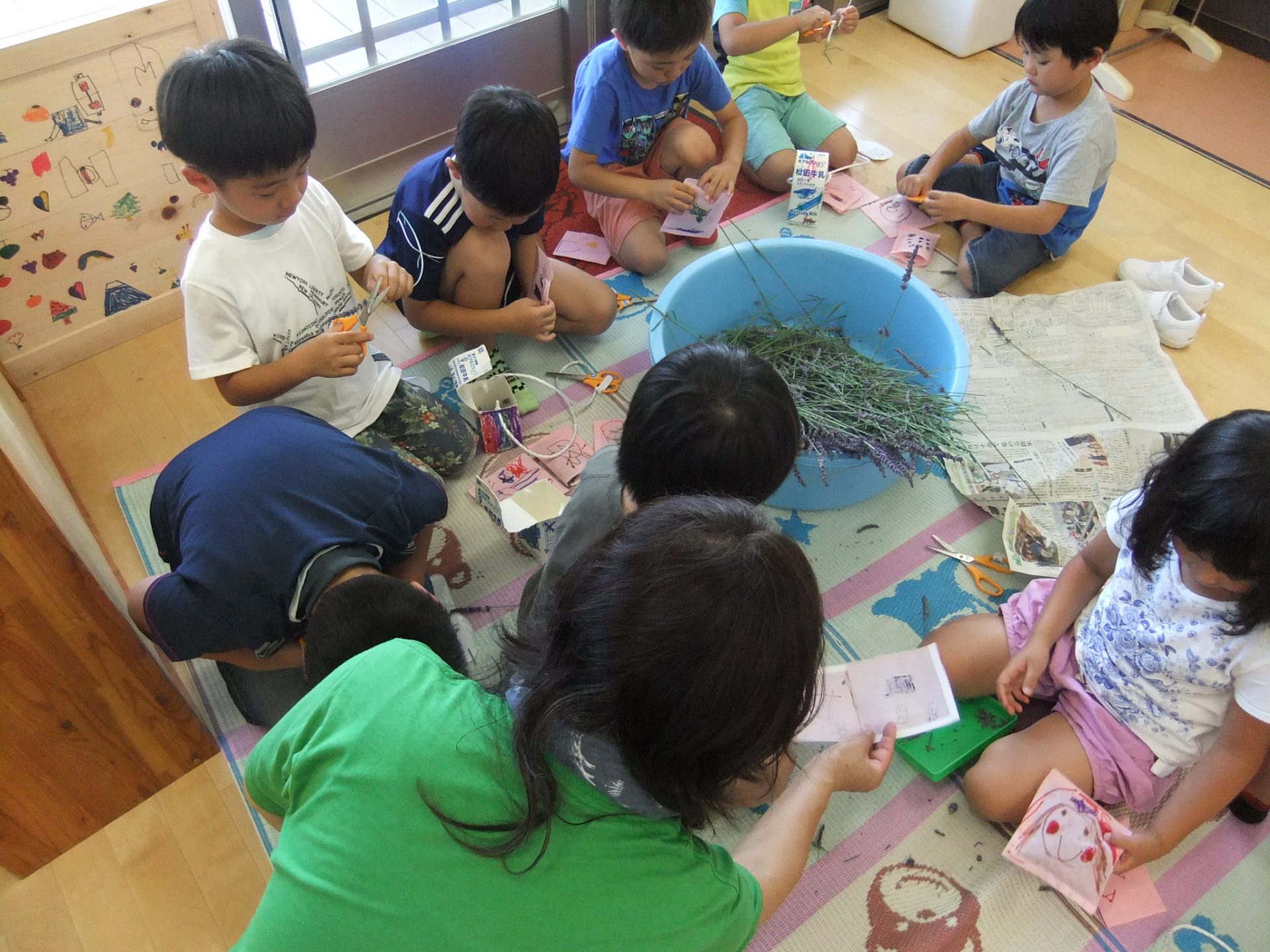 ポプリを作っていると「保育園中、いい匂いでいっぱいだよ。」