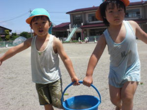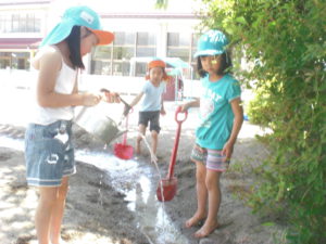 これからも、水や土・砂を使い全身を使って遊ぶことで、楽しみながら体力をつけて欲しいと思います。