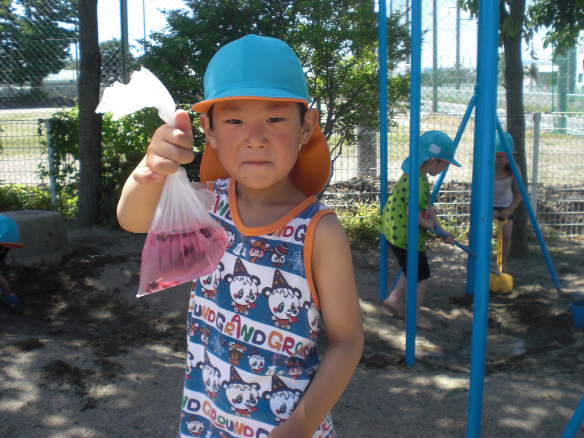 園庭にある桑の木の実を使ってジュースを作って遊んでいる子もいました。