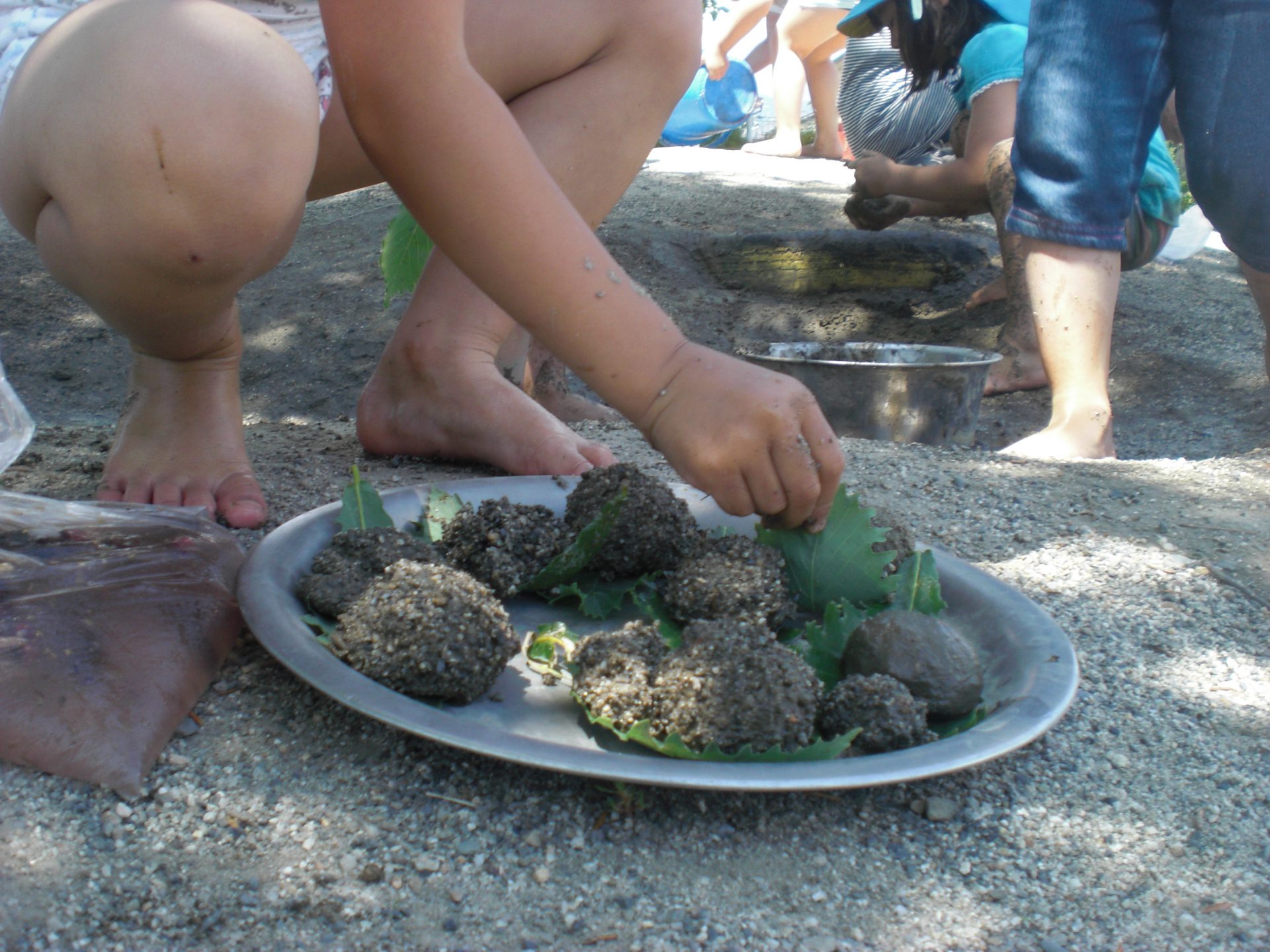 その後は作ったダムに入ったり、できた泥を使って泥だんご作りをしました。
