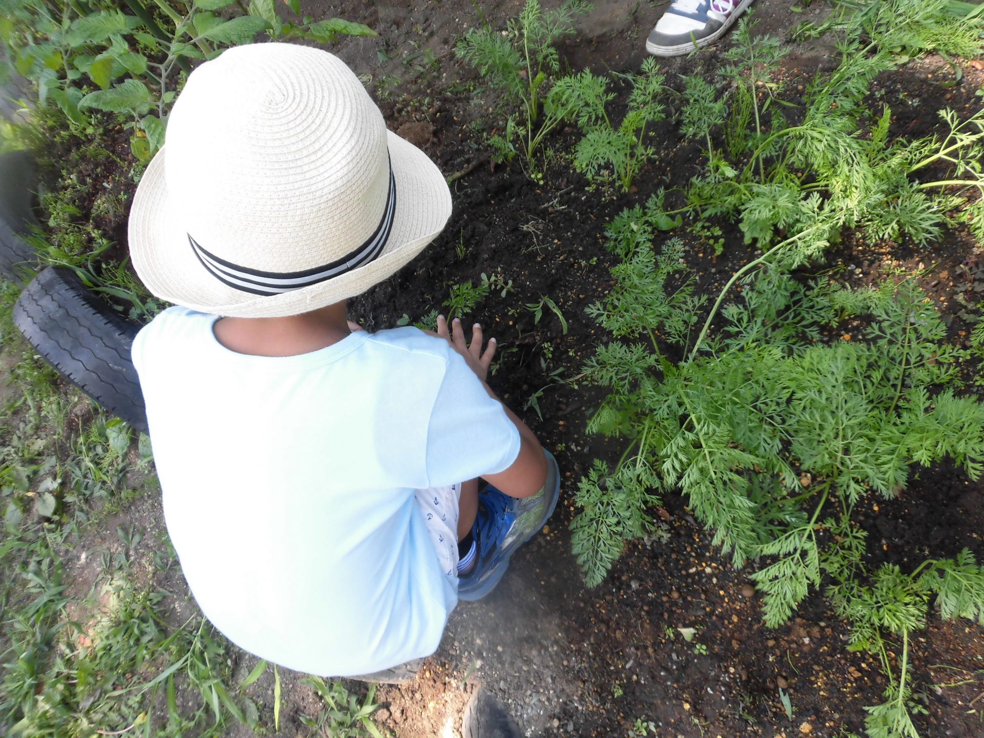 まだ収穫は迎えていませんが、こちらは大きくなってきた人参の葉っぱ。