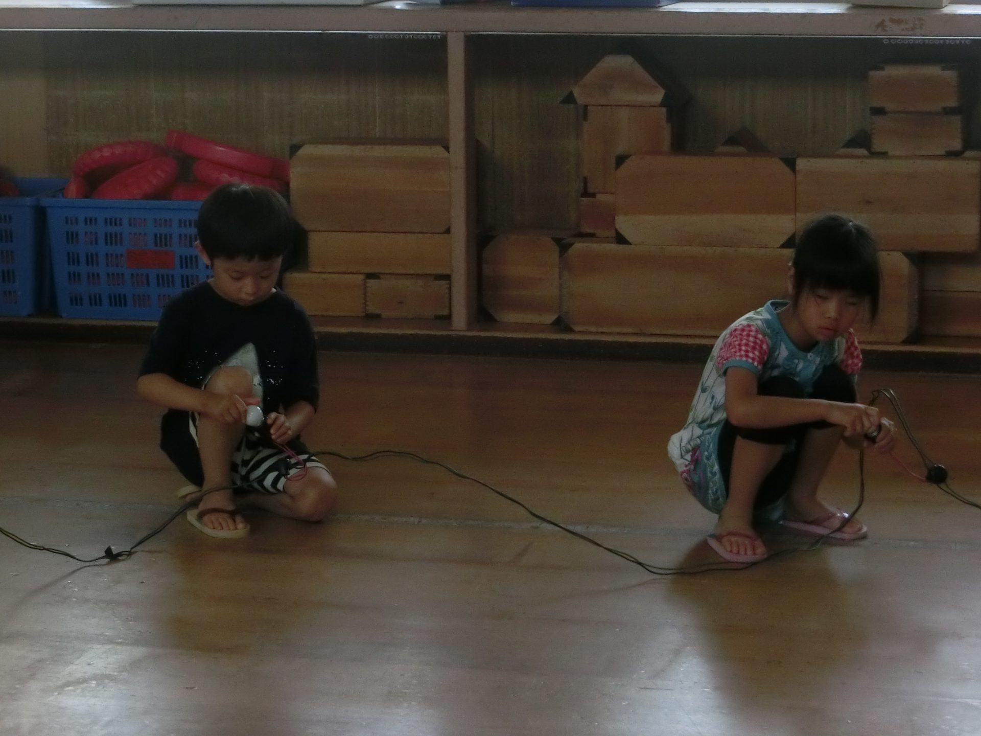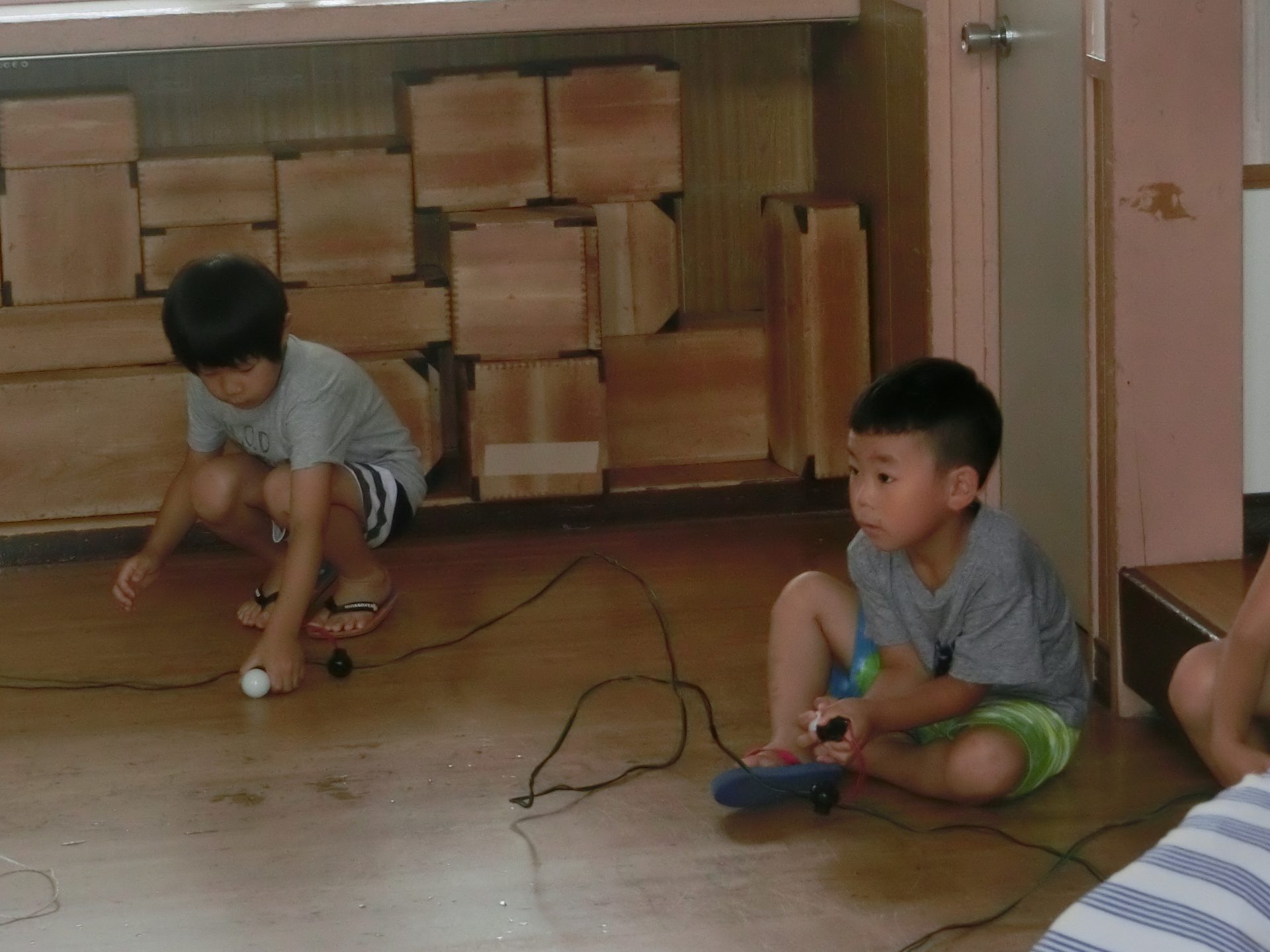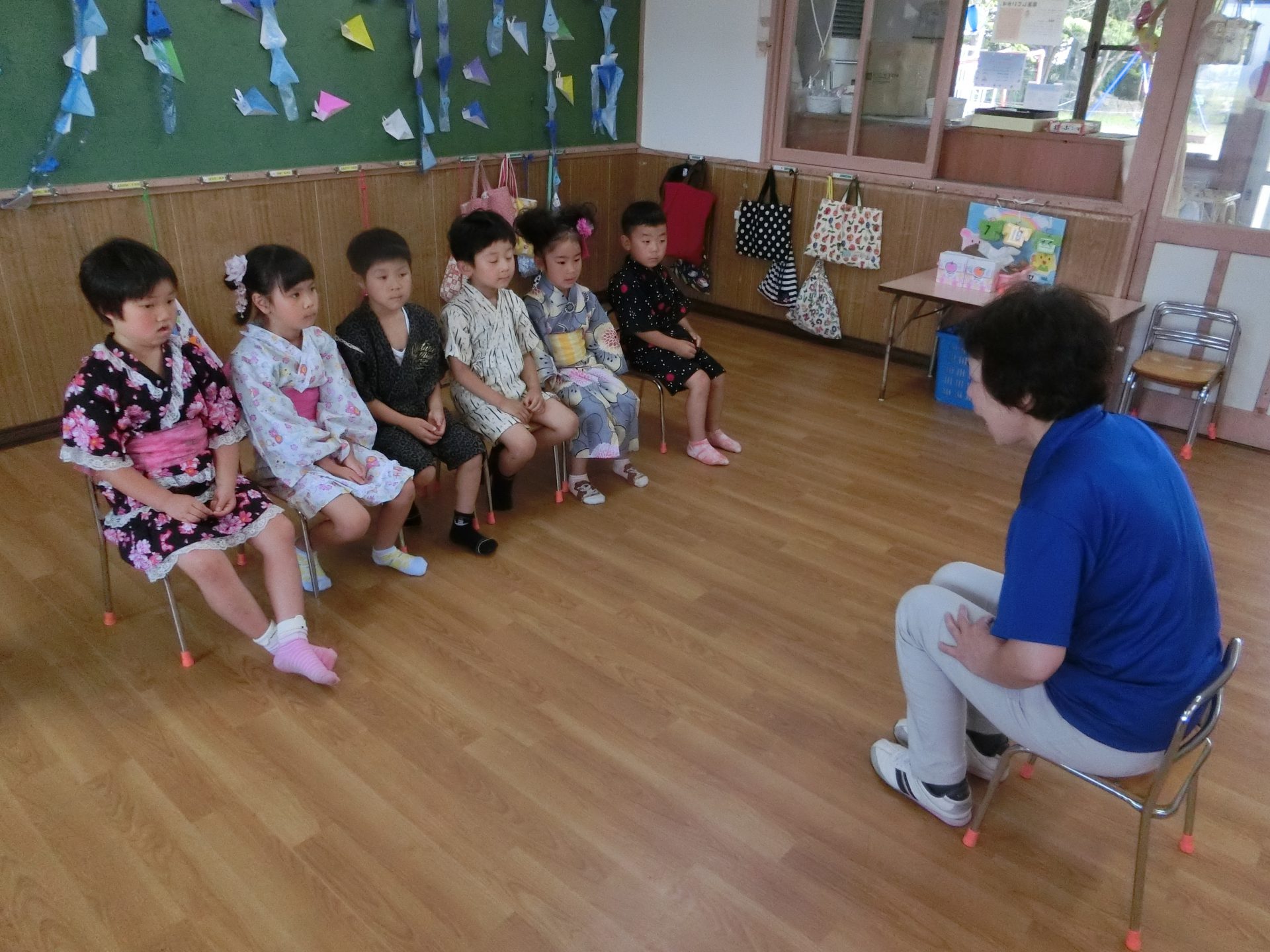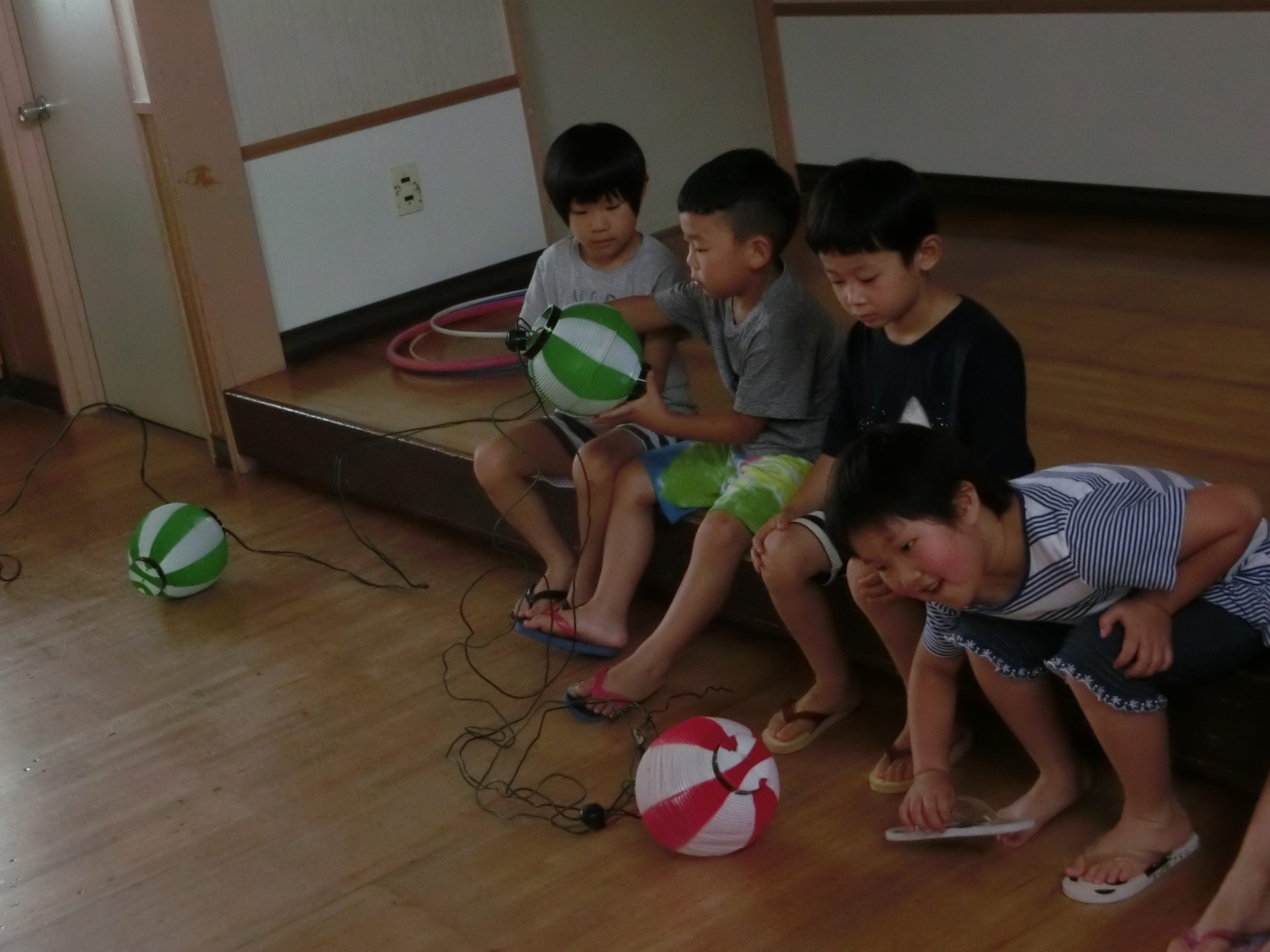 いつもお世話になっている延長保育の先生たちも帰る時間になり、顔を出してくれました。「みんなー!がんばって、楽しんでねー!」と声をかけてくれました。