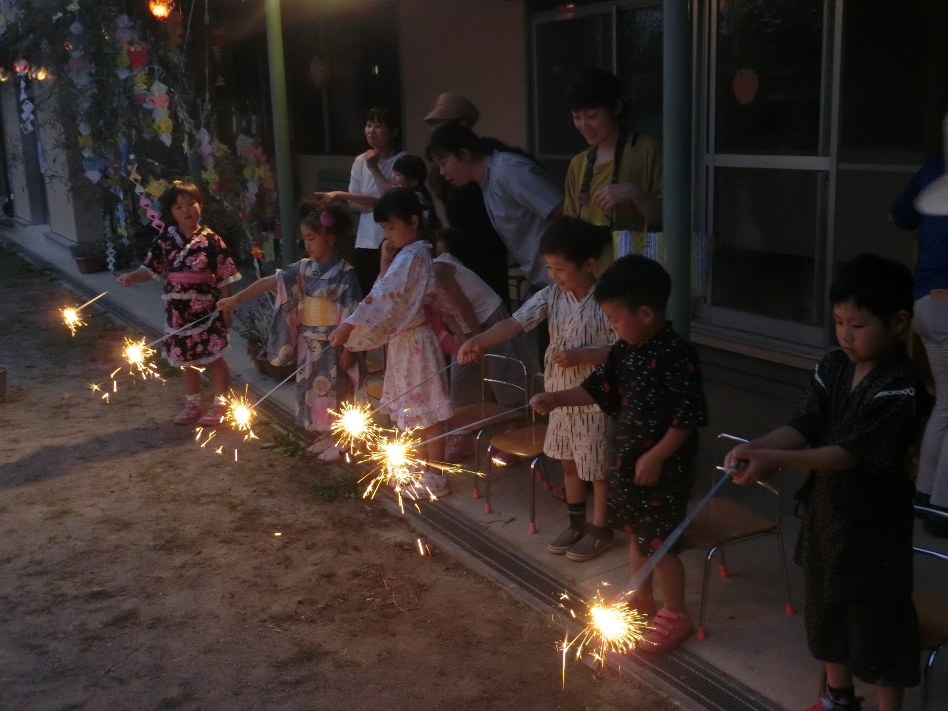 そして最後の花火です。手持ち花火とお父さんが上げてくれた打ち上げ花火を楽しみました。保護者の皆様お忙しい中ご協力いただき、楽しいほしのつどいになりました。ありがとうございました。
