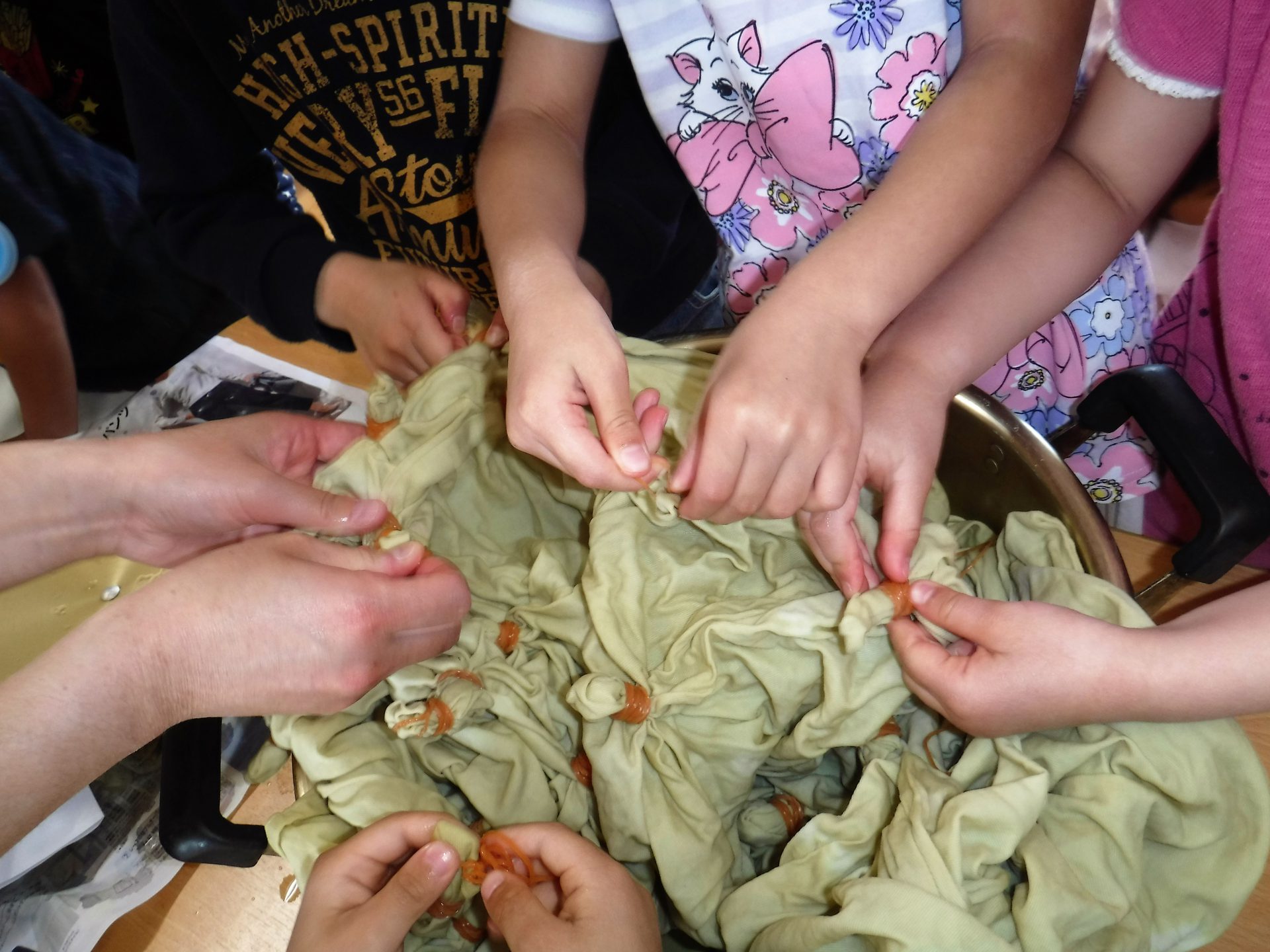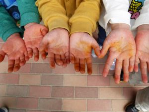 と、大成功のようで満足そう。そして、うまく黄色に染まって嬉しそうな子どもたち🌼