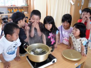 「なんだかくさいよう!」「とうもろこしみたいなにおいがするね!」←かいだことがあるのかな?と笑ってしまいました^^