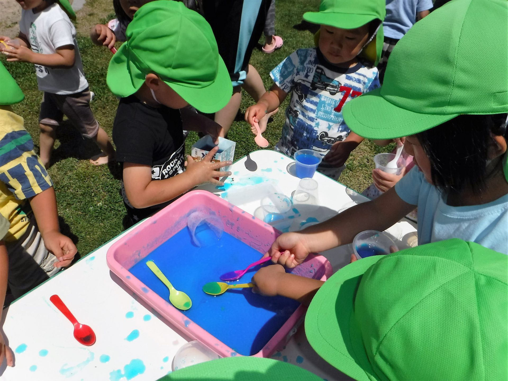 「ぐにょぐにょする!」「冷たくて気持ちいい!」と楽しそう。