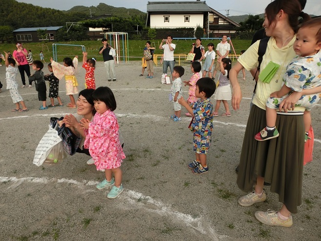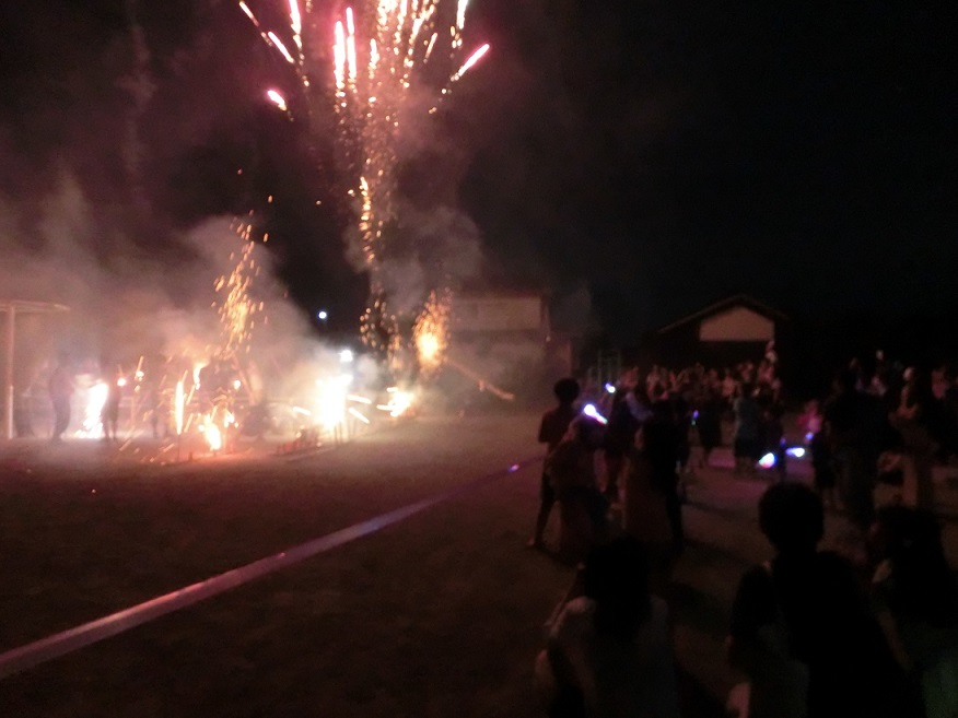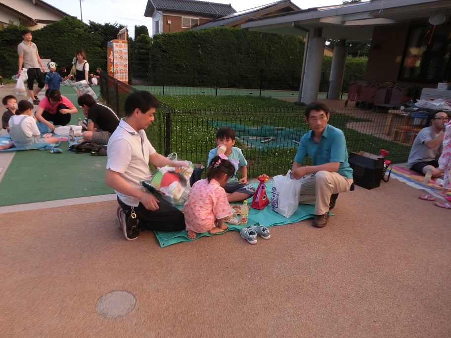夏祭りの閉めはやはり花火!年長児のお父さん方全員で盛り上げてくれました。
