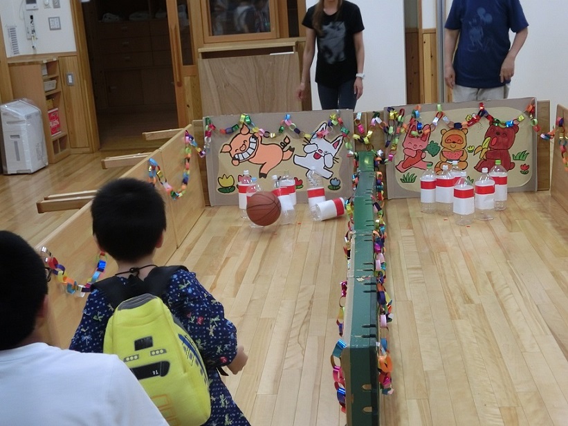 ボーリングのコーナーです。上手に倒しています。