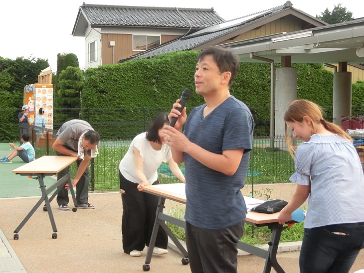 保護者会長の開会宣言でいよいよ夏祭り開始です。