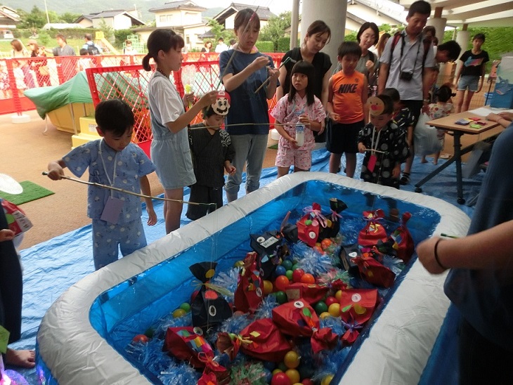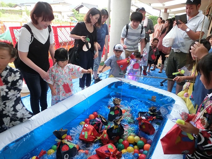 おさかなお菓子釣りのコーナーではどうしたら上手に釣れるかいろいろ考える姿が見られました。