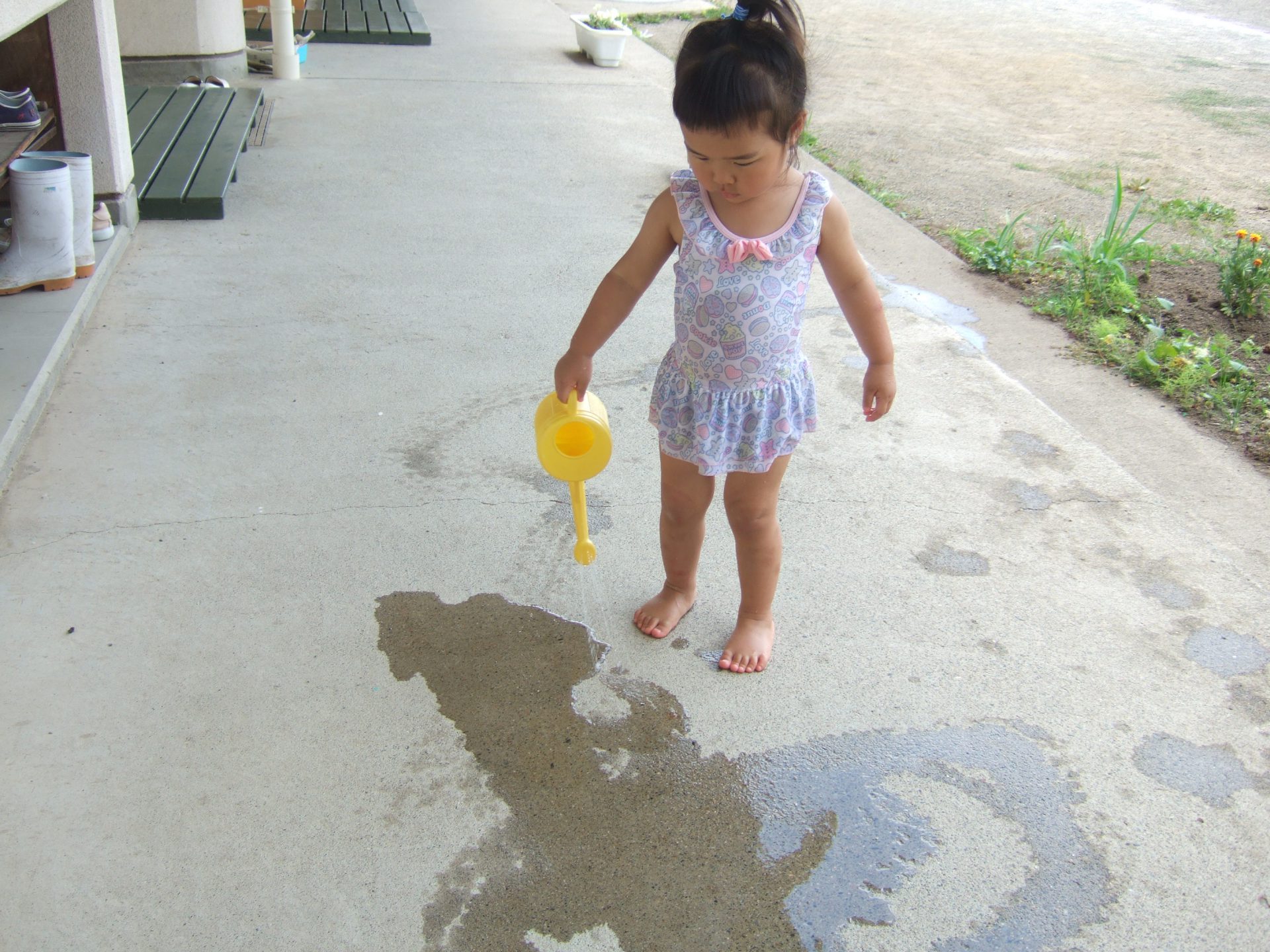 でもあっとゆう間にお水はジョーロの水は空っぽ、、、水が終わる度に”やって”と保育士に水を入れてもらっていました。