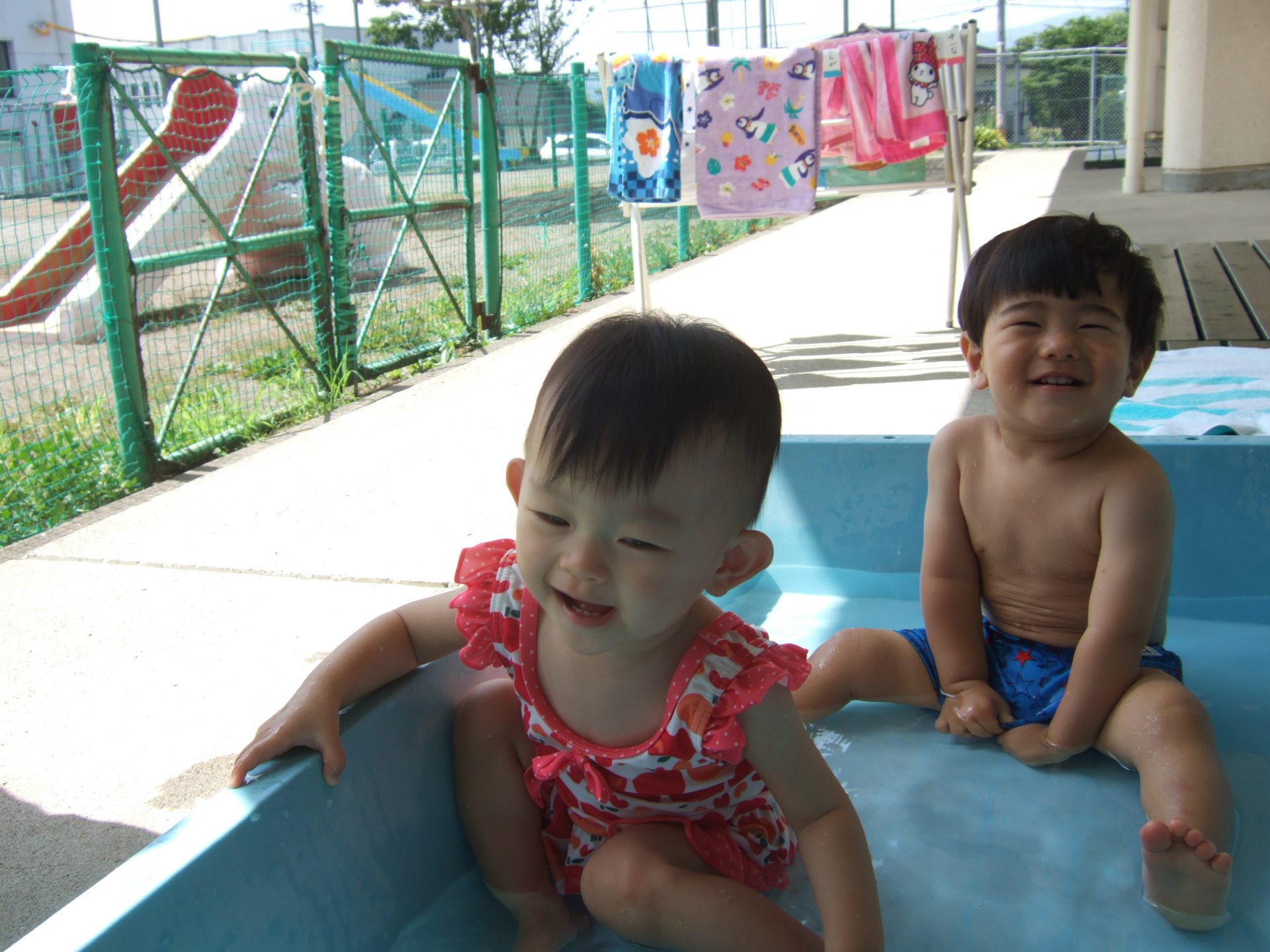 今年の夏は暑いですね!お天気に恵まれて連日水遊びを楽しんでいます。