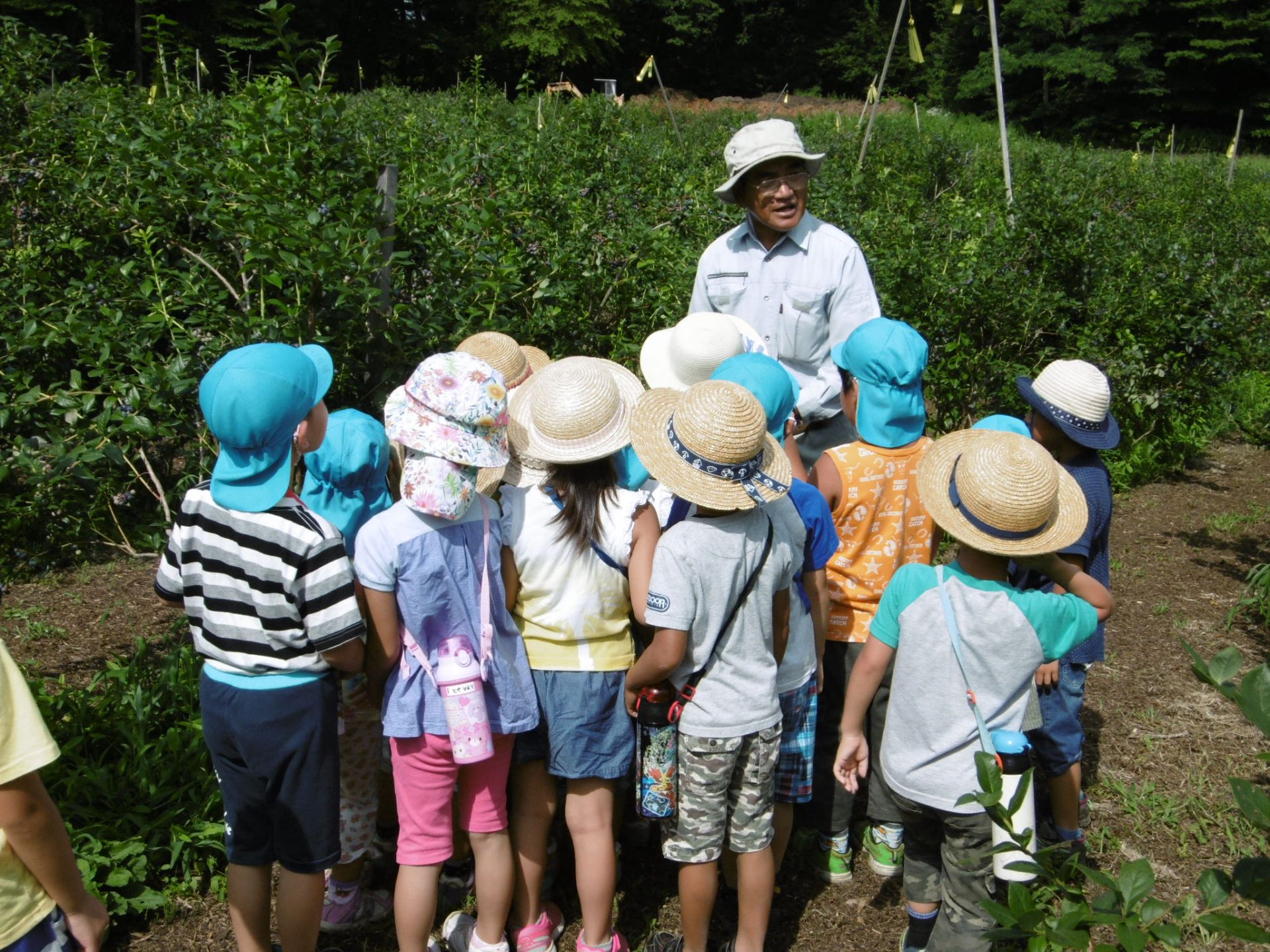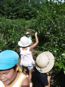 なかなか見ることのできないたくさんのブルーベリーの木に囲まれてみんなとても楽しそうに摘み取り、時々走ったり隠れんぼをしたりしていました。