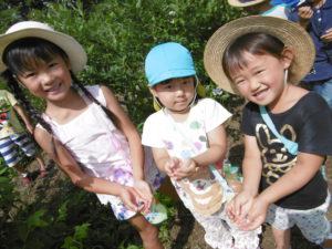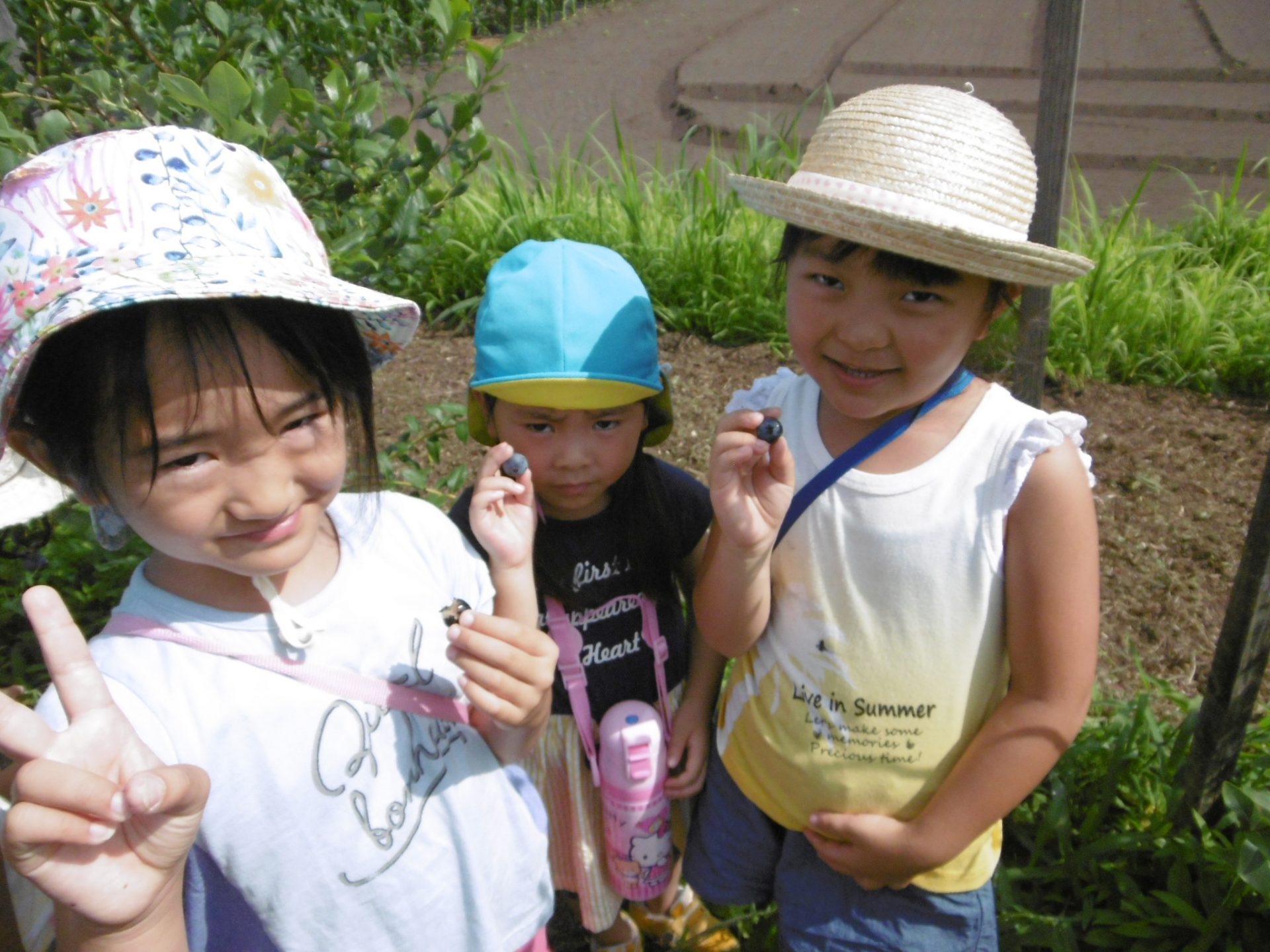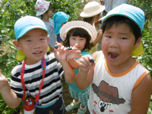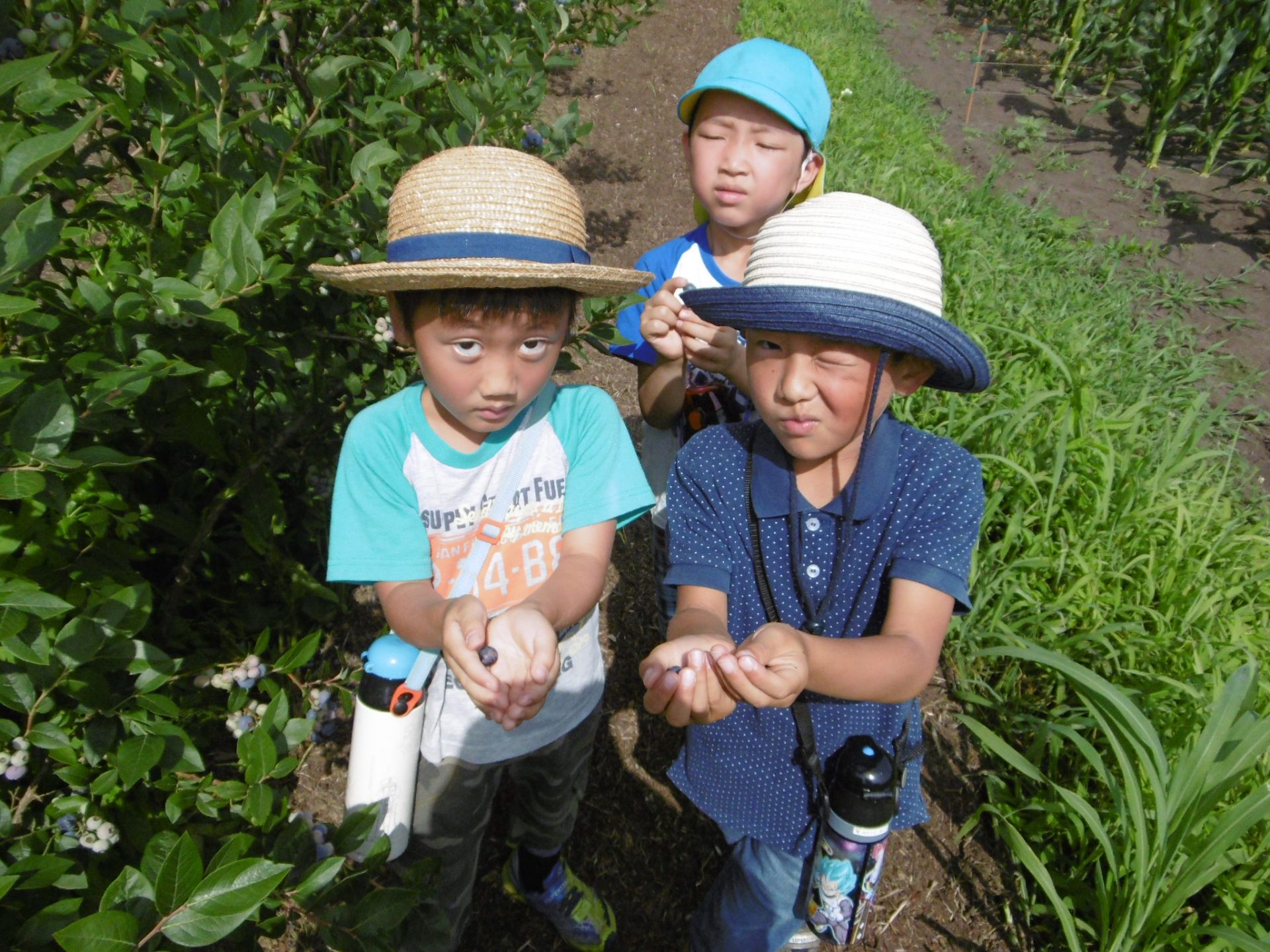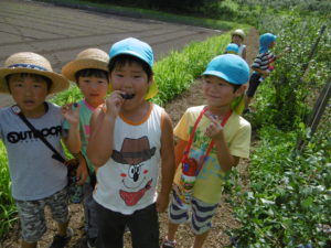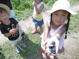 今年のブルーベリーは本当に甘かったです。畑にブルーベリーの木がある子も「家のとおんなじ!」「じじのお家のブルーベリーより甘くて大きい!」とビックリしていました。