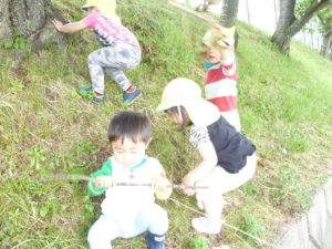 枝を見つけたり、登りはじめた子もいます。