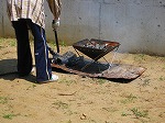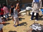 「熱いねー」「けむいね、目が痛くなる」