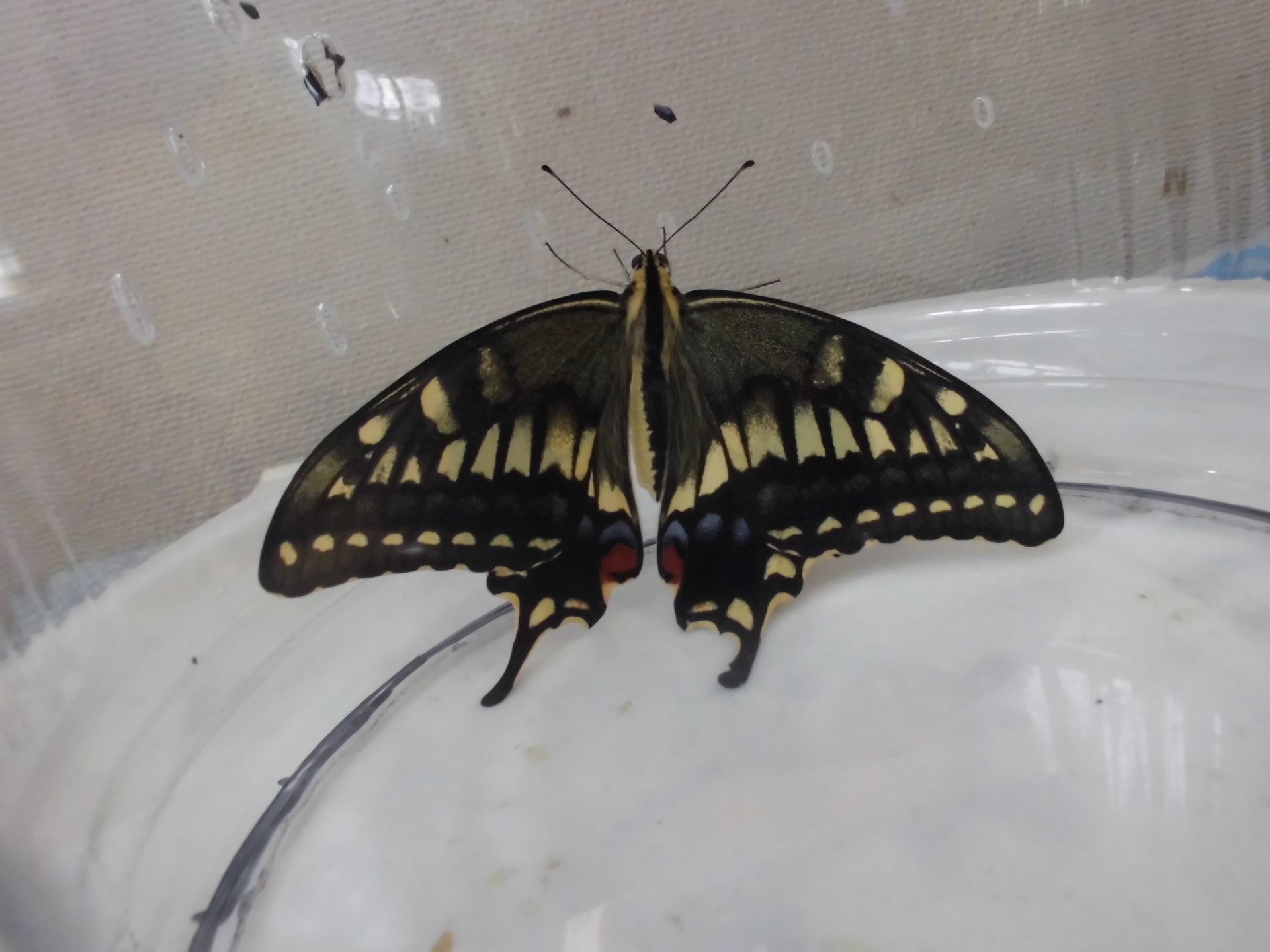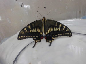 そして数日が過ぎて「あっ!ちょうちょ!」「うまれたんだね」「おめでとう!」とクラス中で大喜び。大きなきれいなアゲハ蝶になりました。