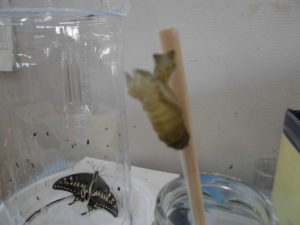 ある子が「はらぺこあおむしの本にさなぎは寝るって かいてあったよね」と思い出しました。「じゃあ、何も食べないんだね」