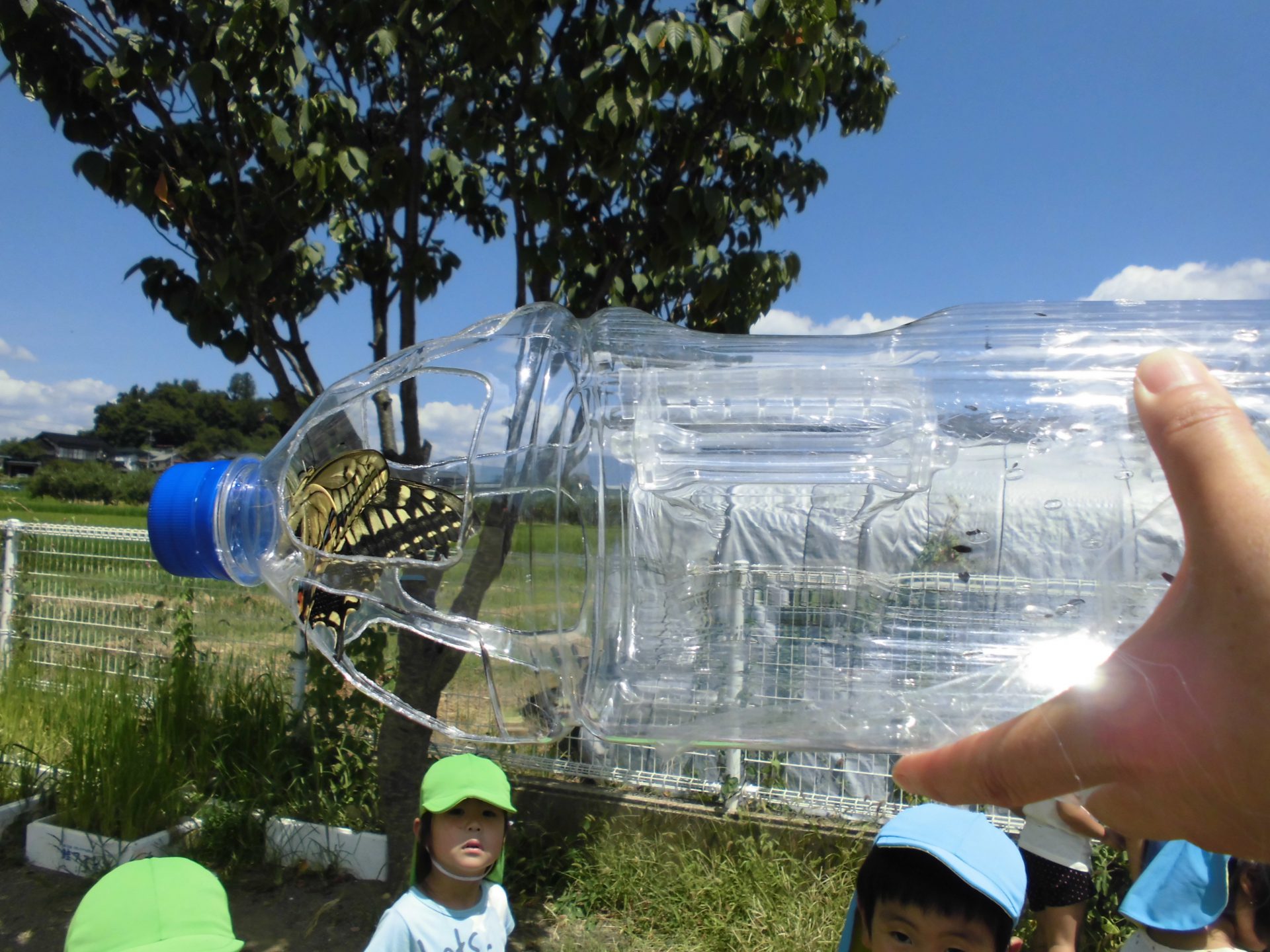 お昼寝のあと、逃がそうということになりました。保育士は「子どもたちがこのアゲハ蝶を飼うと言ったらどうしよう」と正直思ったそうです。それこそ「餌は?」となりますね。でもみんな「お母さんの所へかえそう」と言い、逃がすことになりまし