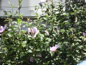 園庭のむくげの木のそばで話すと嬉しそうに花の蜜を吸い始めました。「おなかすいてたんだね」「おいしいって言ってるね」とこどもたち。保育士もうれしい気分でした。