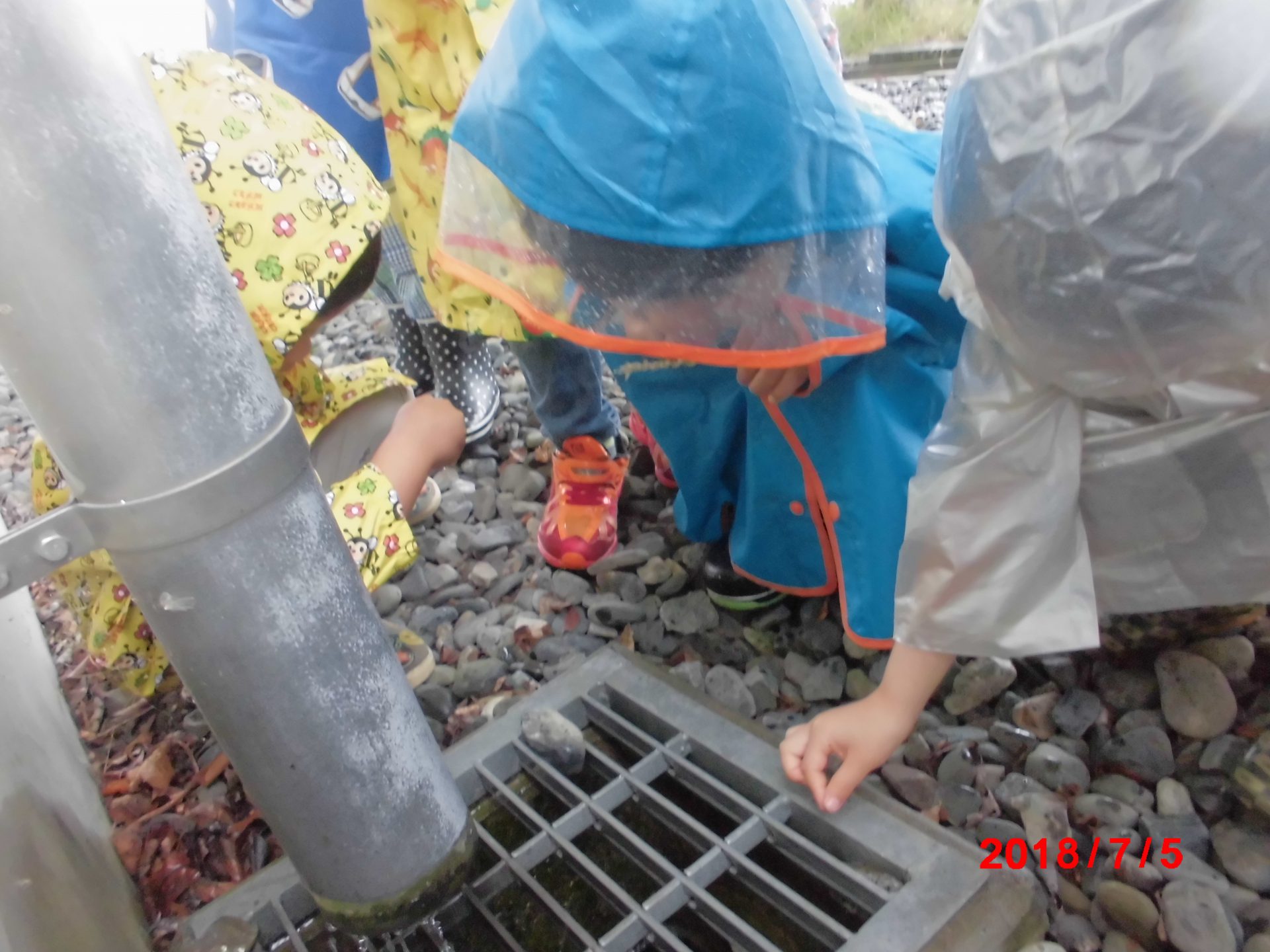 立ち止まっては目をつむり、じーっと音を聞き、雨の日にしか聞こえないその音に興味津々でした。